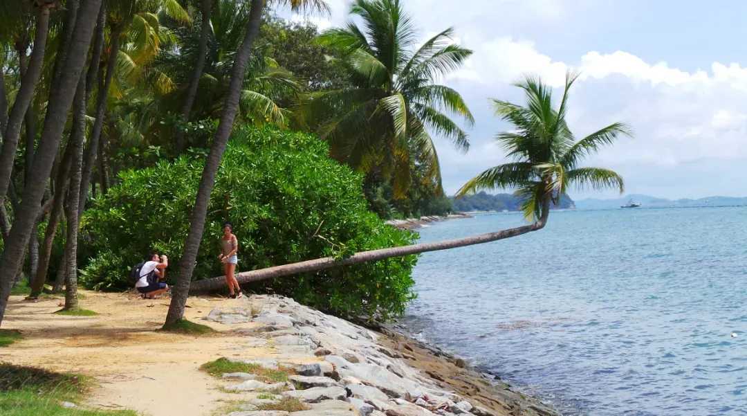 来“亚洲大陆最南端”~巴拉湾海滩拍照吧 有细软的沙滩、茂密的丛林、90°角生长的椰子树