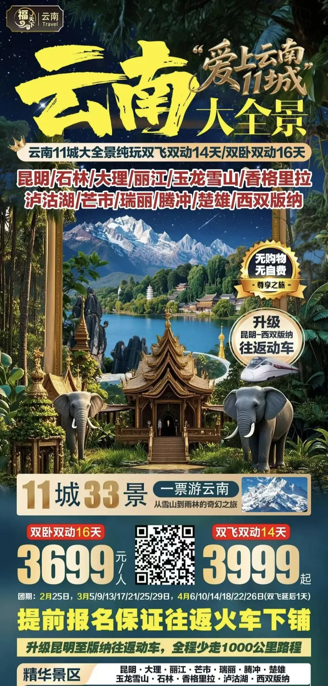 春节到来,云南旅游又热起来啦!其实云南的经典线路就这几条,清晰明了👇