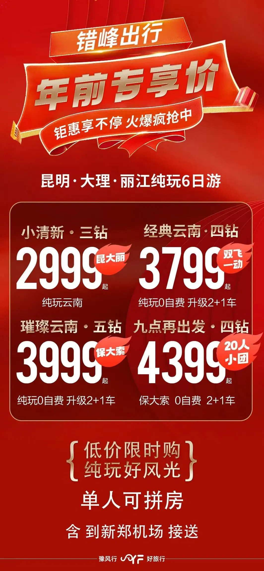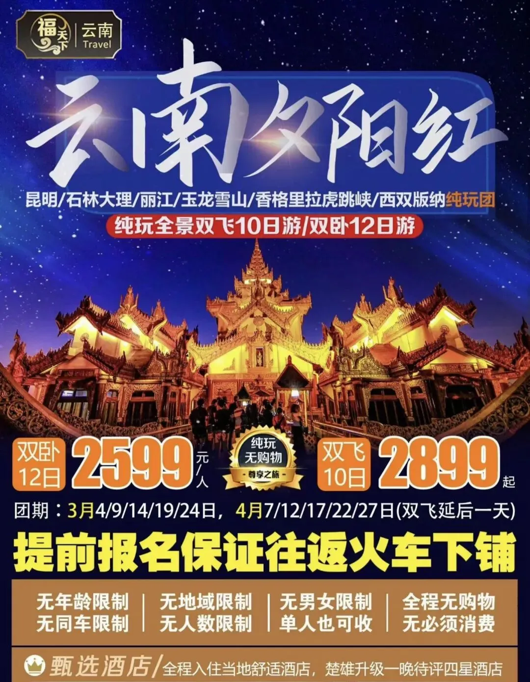 🔗 直飞昆明:昆明+大理+丽江双飞6日游,还能延伸香格里拉、泸沽湖、西双版纳,每延伸一个地方加2天~