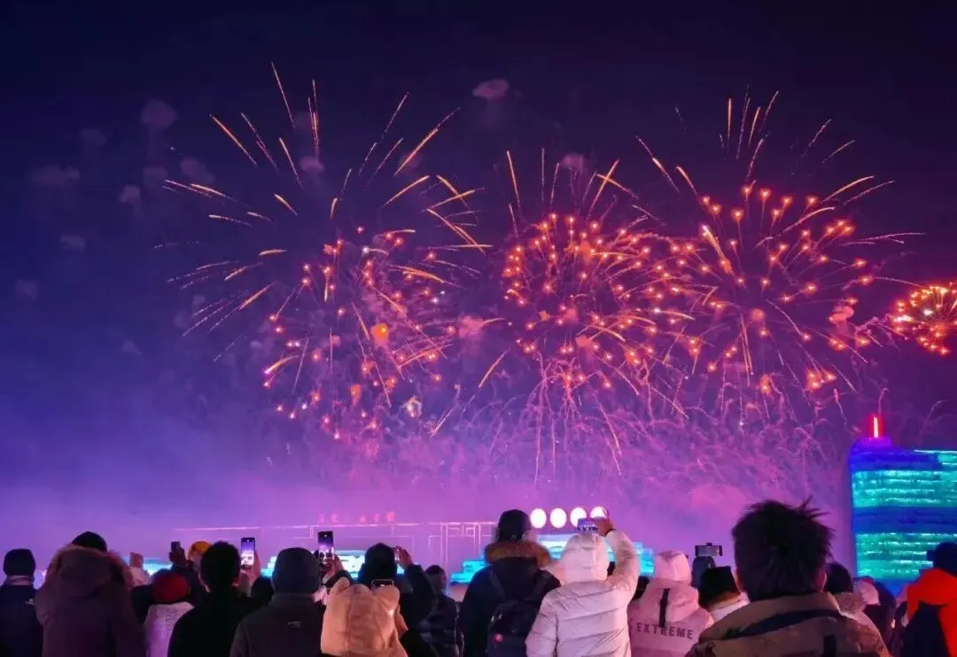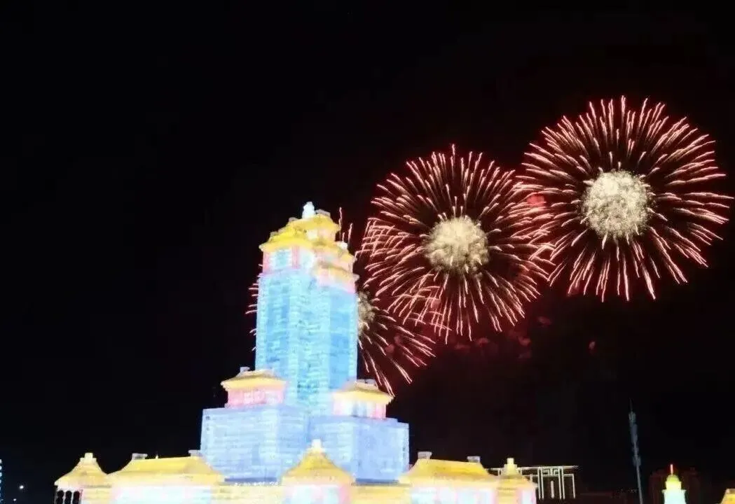 南北方小年两天,烟花在冰雕雪建上空绽开🎆精彩演出嗨翻全场,预计超2000人一起闹小年🤩