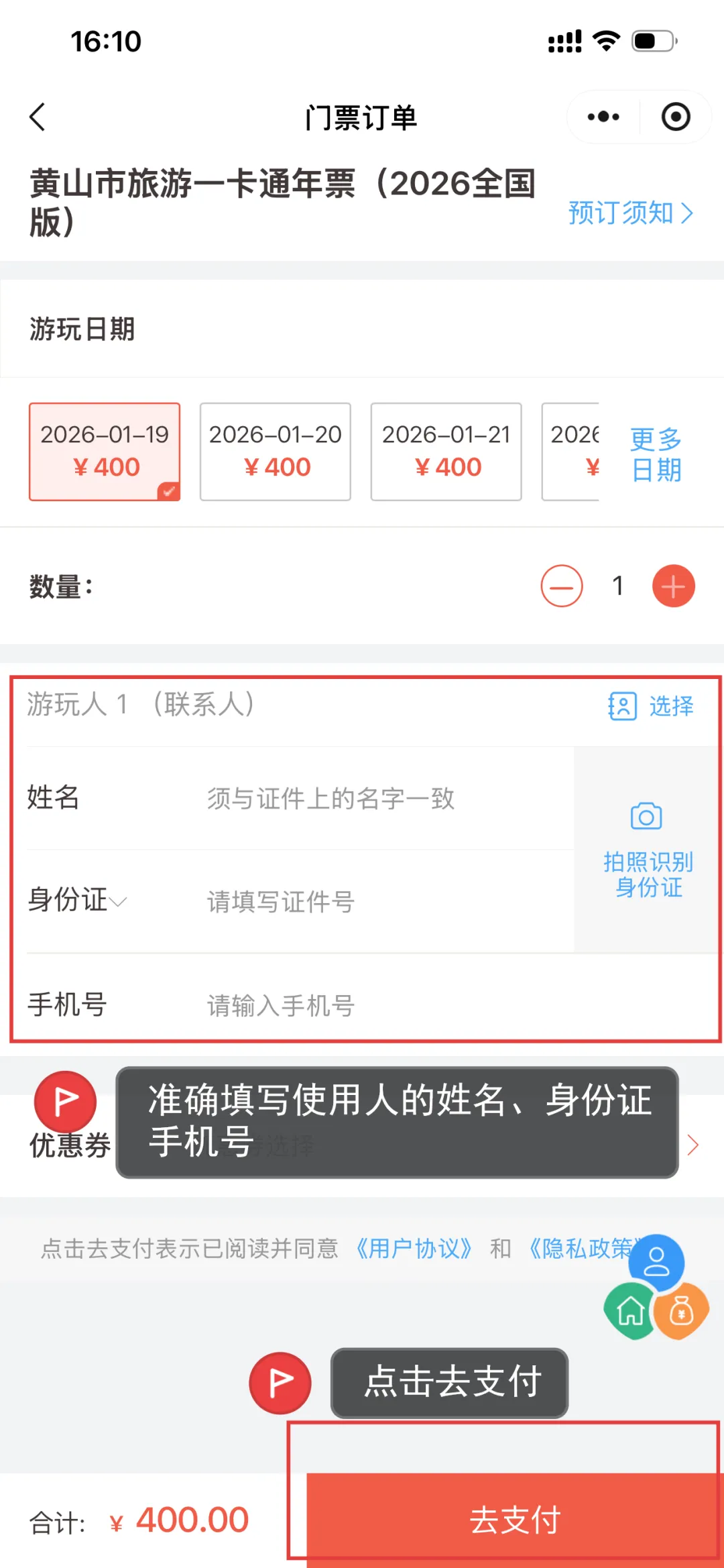 按提示完成实名信息填写并支付 400元。⏰ 发售时间:2026年1月15日至2月14日🚨 重要提示:全国限量发行20000张,每人限购1张,售完即止