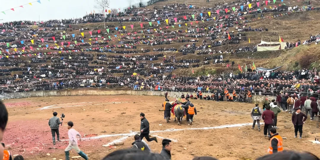 这里不仅有网红牛王苗刀,更是榕江旅游中藏着侗乡'相思节'温情的小众打卡地。2月6日这天,牛塘迎来了一场热闹非凡的斗牛盛会。我特意赶过来,就为了赴一场藏在牛角里的约定,亲眼见证这场属于侗家人的温情盛会。