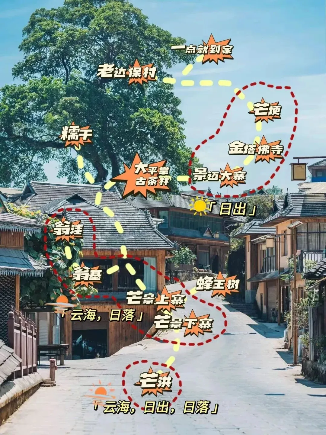 逛古寨是解锁人文的关键,翁基布朗族古寨和糯干傣族古寨一定要去!翁基是《一点就到家》取景地,千年干栏式木楼依山而建,家家户户有茶室,坐下来喝一杯布朗烤茶,听茶农讲古茶树的故事,烟火气拉满;糯干更原生态,石板路贯穿全寨,寨在茶林中,人在画中游,随手拍都是原生态大片。