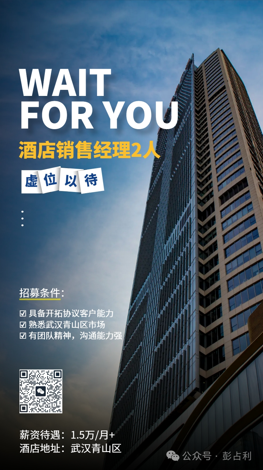 您现在的位置是:首页 > 国内旅游目的推荐 > 正文 国内旅游目的推荐 抢占先机,节后酒店招聘,速递 admin2024年02月13日 00:59:57国内旅游目的推荐116 春节之后是酒店招聘黄金阶段,虽然,也是大家选择新工作岗位的最佳时间窗口。在应聘时,彭老师温馨提醒:第一、自己简历要认真编写,如果自己的简历都不用心,工作上的结果就可想而知。第二、把握好面试节奏。第三、敏感话题答复。尤其是为什么离开上一家酒店;个人的优点和短板都有哪些;如何带领未来你的团队;薪酬的要求等。一定要提前准备好答案。第四、选择岗位关键看你个人的职业生涯规划,就是你的目的;是赚钱第一还是发展提升自己能力第一。这一点决定你未来在酒店这个行业的地位和位置。好了,这个话题就先分享到这里,看看下面这几家酒店招聘信息,下面信息都是彭老师的客户及一家酒店集团的信息:第一家酒店作标:武汉青山区第二家酒店作标:成都第三家酒店作标:北京三里屯附近第四家酒店集团作标:深圳如果应聘以上前三家酒店请扫码海报上二维码与彭老师联系,后面一家酒店集团请直接打电话联系。节后很多城市的酒店都会步入淡季,正好也是提升和学习的好时机。2024年仍然是挑战的一年,如何做到酒店经营闭环·持续提升业绩~是酒店必须要面对的问题。基于此,彭老师节后第一课《酒店经营闭环·持续提升业绩》实战课来袭,欢迎大家参加,点击查看:持续提升酒店业绩的底层逻辑,再定位,营销策略,全域营销方法,有效机制,客户管理,复购率提升,8大主题2月28-29日长沙·公开课 转载请说明来源于"旅荐网",部分内容转载自网络,如有侵权请联系qlwl@foxmail.com删除 本文地址:https://www.15386.cn/post/9722.html 上一篇 陈乔恩与老公海边搞怪度假!超萌身材爆笑秀,让人羡慕不已! 下一篇 正月初三,凤凰湖景区人气满满,踏春游玩正当时! 相关文章 五一出行必备!江浙沪这8条自驾路线,人少景美,错过等一年! 关于举办第四届广西大学生红色旅游创意策划大赛的通知 3-4月穷游攻略12城免费景点清单,学生党速 QClaw实践: 出行前生成旅游规划及游玩位置地图 龙宫风景区旅游规划案例 合肥最全旅游攻略来了!一篇文章告诉你:合肥应该怎么玩? 清明时节武当山、丹江口3日2夜l旅游攻略 3日旅游指南(南平) 漠河3天2晚旅游攻略680/位 当旅游攻略不再靠“自己拼”:从 TripStar 看 AI 文旅产品的新机会 发表评论 取消回复 评论列表 这篇文章还没有收到评论,赶紧来抢沙发吧~