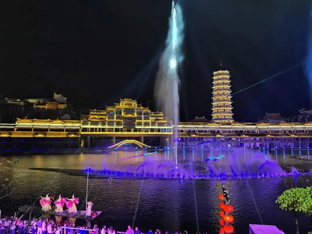 太湖古镇35000㎡水舞秀,大型免费欣赏现场