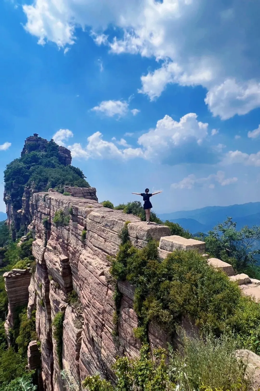 嶂石岩景区:位于赞皇县嶂石岩乡,距市区约100公里,隐于太行山东麓。历史价值:国家级地质公园,嶂石岩地貌发源地,拥有世界最大天然回音壁,藏有西周至宋明摩崖碑刻。名人古籍:周穆王留下“吉日癸巳”石刻,明代乔宇题诗著碑,《赞皇县志》记载九女峰奇景。切身感受:丹崖绝壁层叠,回音壁悠远绵长,山间古寺残碑映清泉,苍松缀峰峦,浅色系衣衫取景氛围感拉满✅