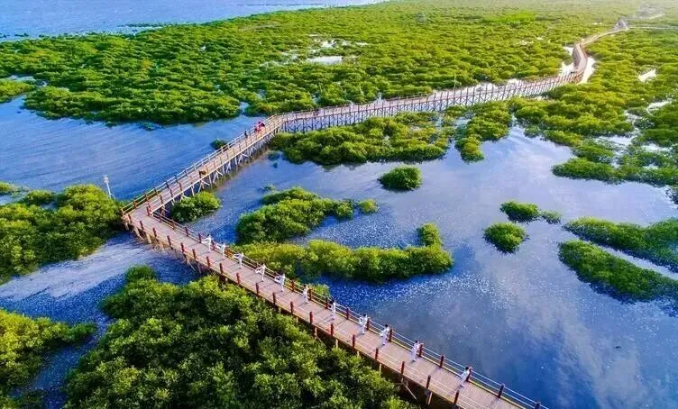 北海金海湾红树林生态旅游区距市区 15 千米,和银滩一脉相连,拥有 6000 米海岸线,退潮后拥有 100余公顷红树林。