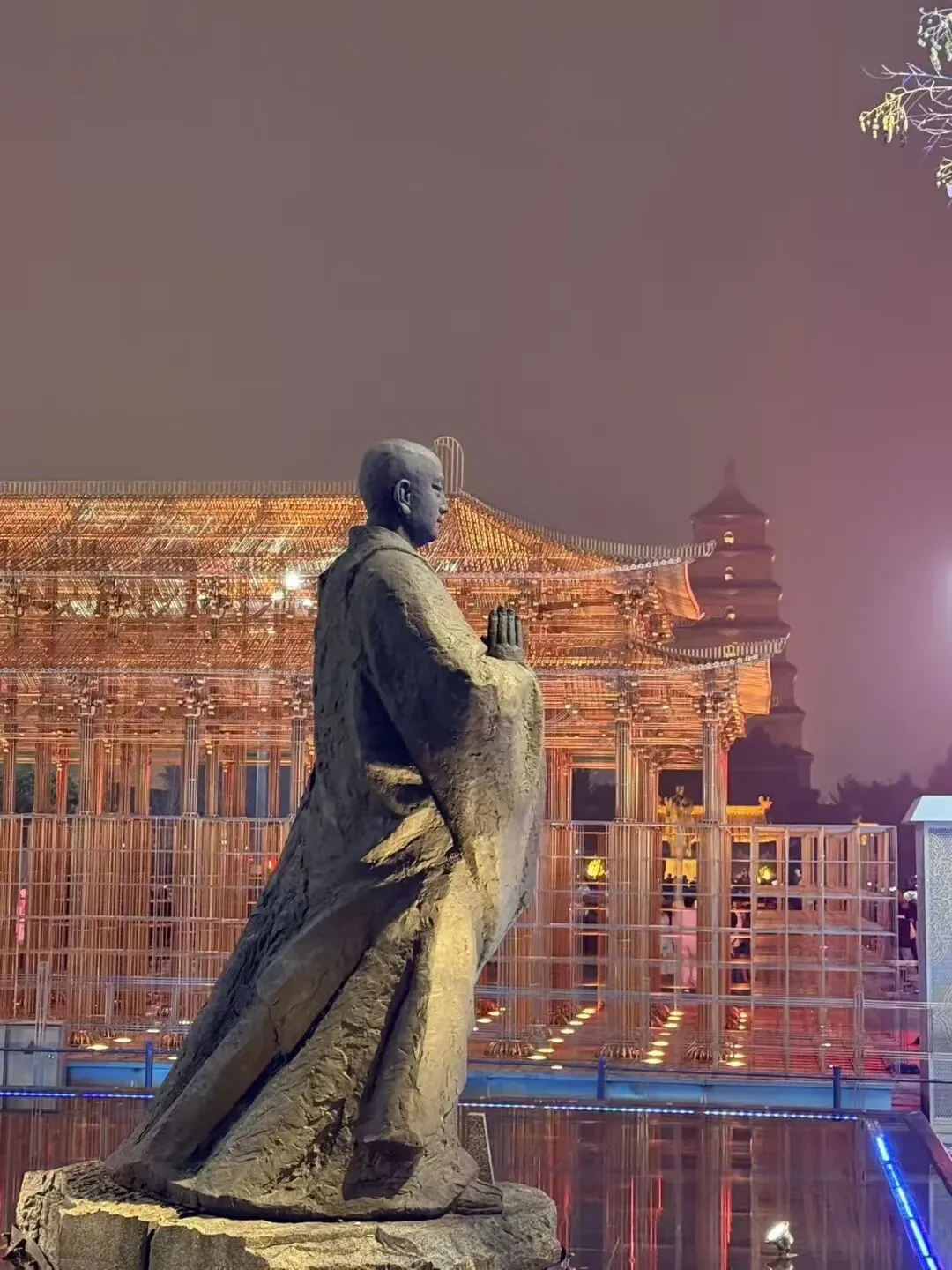 19:00大雁塔北广场看喷泉,沿着不夜城一路向南观看《盛唐密盒》、《琵琶行》等,最后在开元广场看《再回长安》和《不倒翁》。