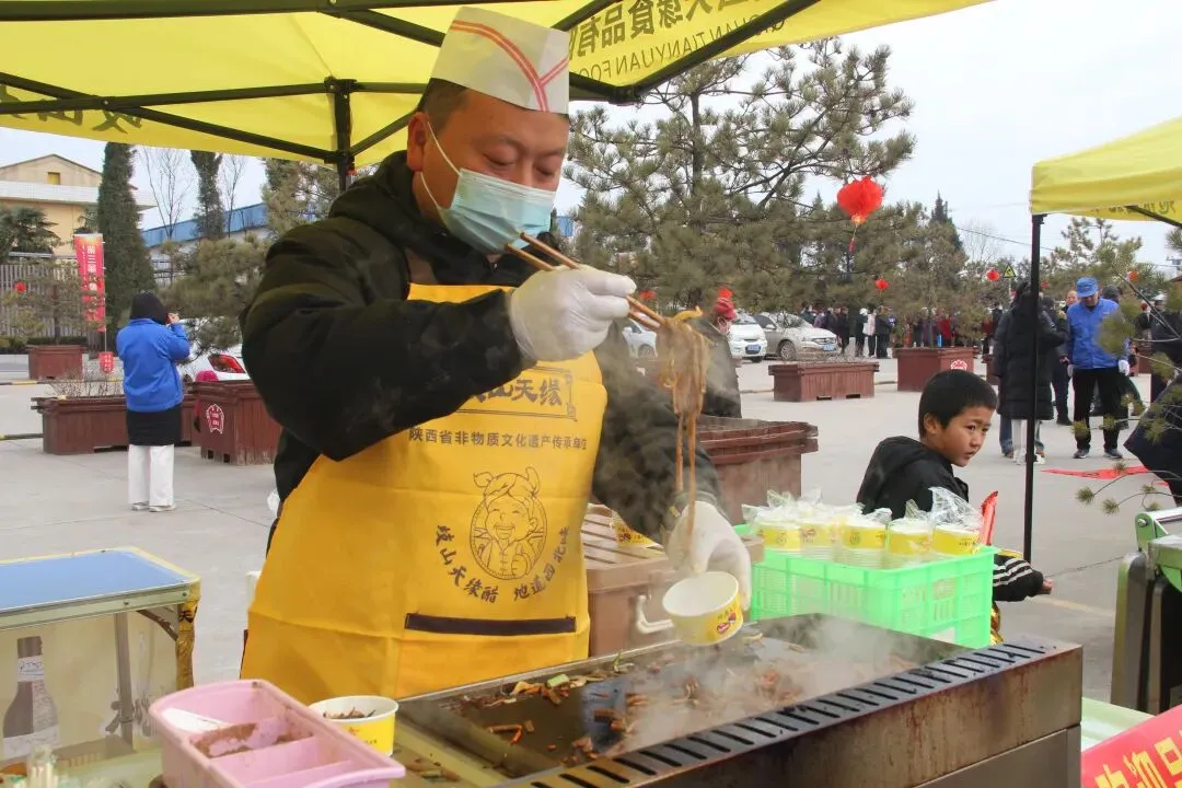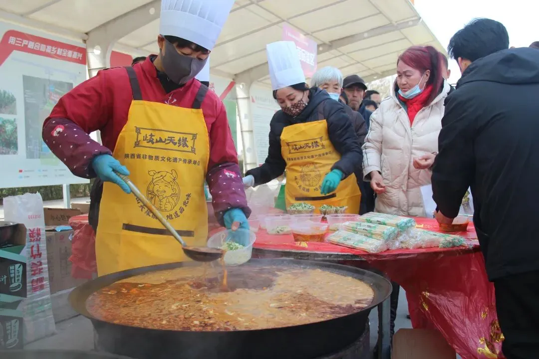 活动现场以天缘醋为主打,岐山挂面,天缘醋粉,天缘面皮等精美包装的农副产品既洋溢着年的喜气,又透漏着难以割舍的乡愁和家乡味道,由于自产自销,真材实料,工艺传统,味道独特多种口味,好吃不贵,经济实惠受到大家的热捧和抢购,争相把非遗美味带回家。