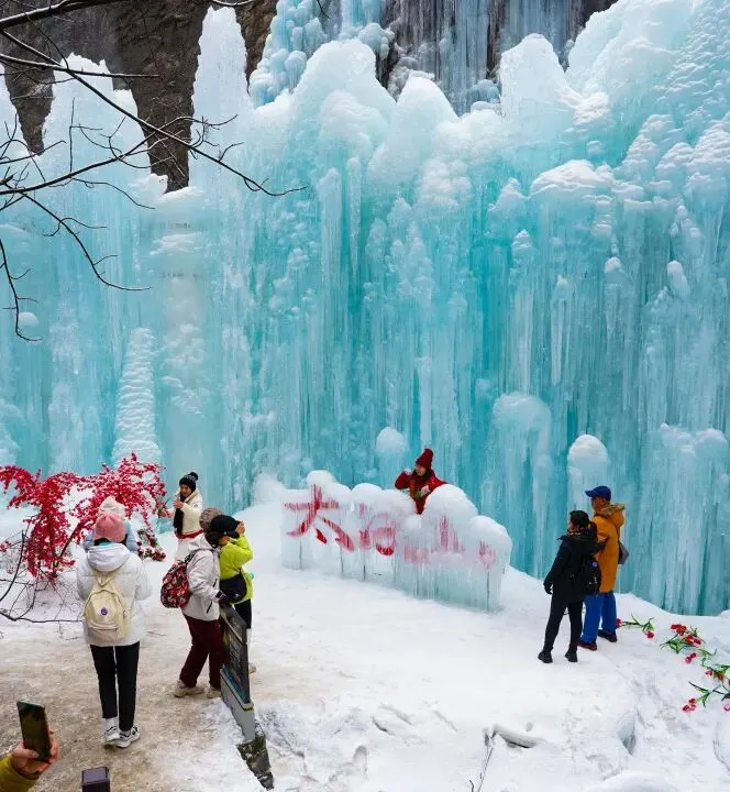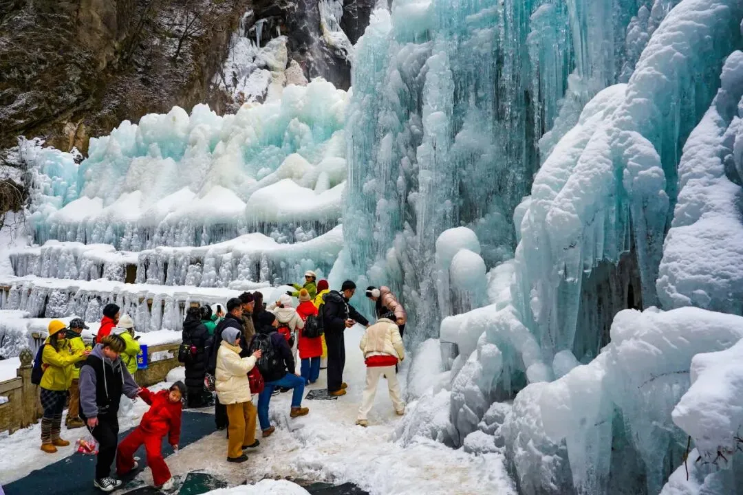 从眉县东站乘接驳车可达,线路串联起莲花峰、泼墨山等核心景点,冰瀑垂挂、雾凇凝枝、云海翻腾。