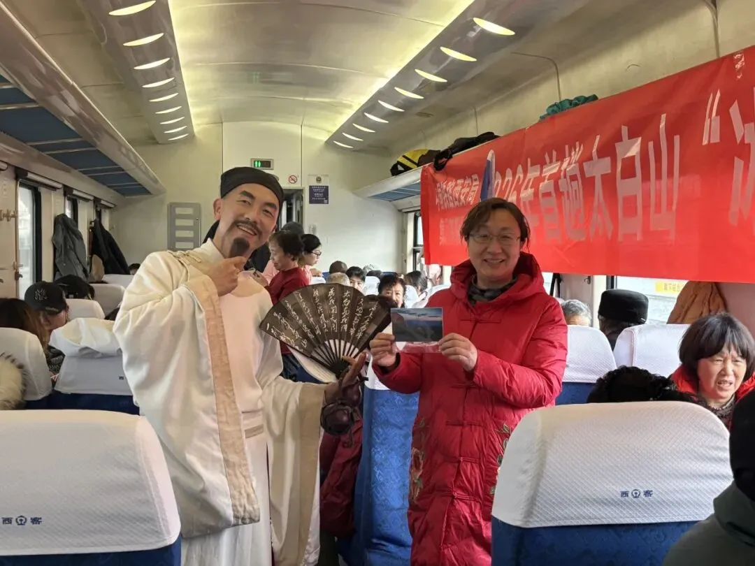 专列精心策划一系列特色文化互动活动。太白山网红达人“李太白”将太白山的历史传说、自然风貌娓娓道来,还与旅客展开妙趣横生的诗词对答,车厢内欢声笑语不断。