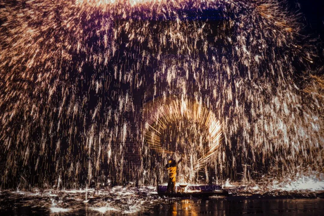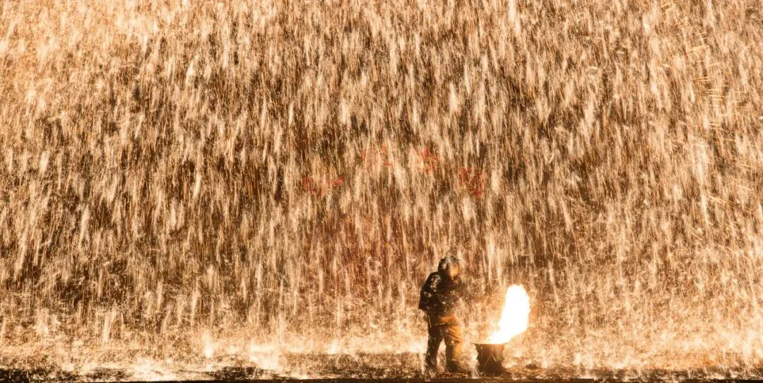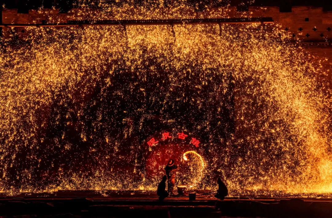 火树银花的浪漫 来暖泉镇 必须要看打树花 至今已经有好几百年的历史 用熔化的铁水泼洒到古城墙上 迸溅形成万朵火花 犹如枝繁叶茂的树冠 那壮观程度不亚于燃放烟花