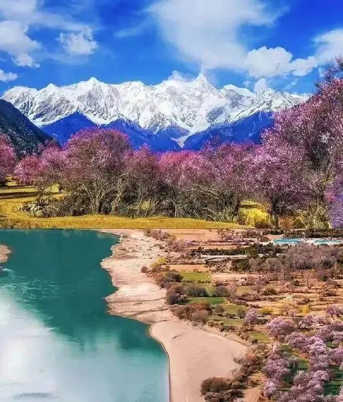 雅鲁藏布江切出的大拐弯做出了湿暖河谷,雪峰的风来得狠,春天温差拉到极限,桃花在山脚开,雪挂在山顶不动。