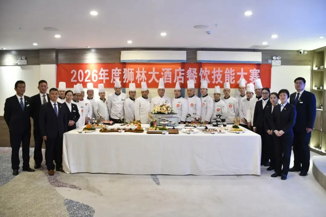 2月3日-4日,狮林大酒店组织开展“匠心服务铸品质 技能练兵展风采”2026年度青工技能大赛。赛事设置菜肴烹饪、宴会摆台、客房清扫、创意手工、设备维修、前厅接待、创意短视频7个赛项。参赛选手们凭借扎实的专业知识和娴熟的操作技巧,在比赛中互相学习、共同进步。此次技能大赛,不仅为员工提供了展示自我的平台,更进一步强化岗位练兵与实战能力培养,推动酒店服务流程标准化、操作规范精细化。