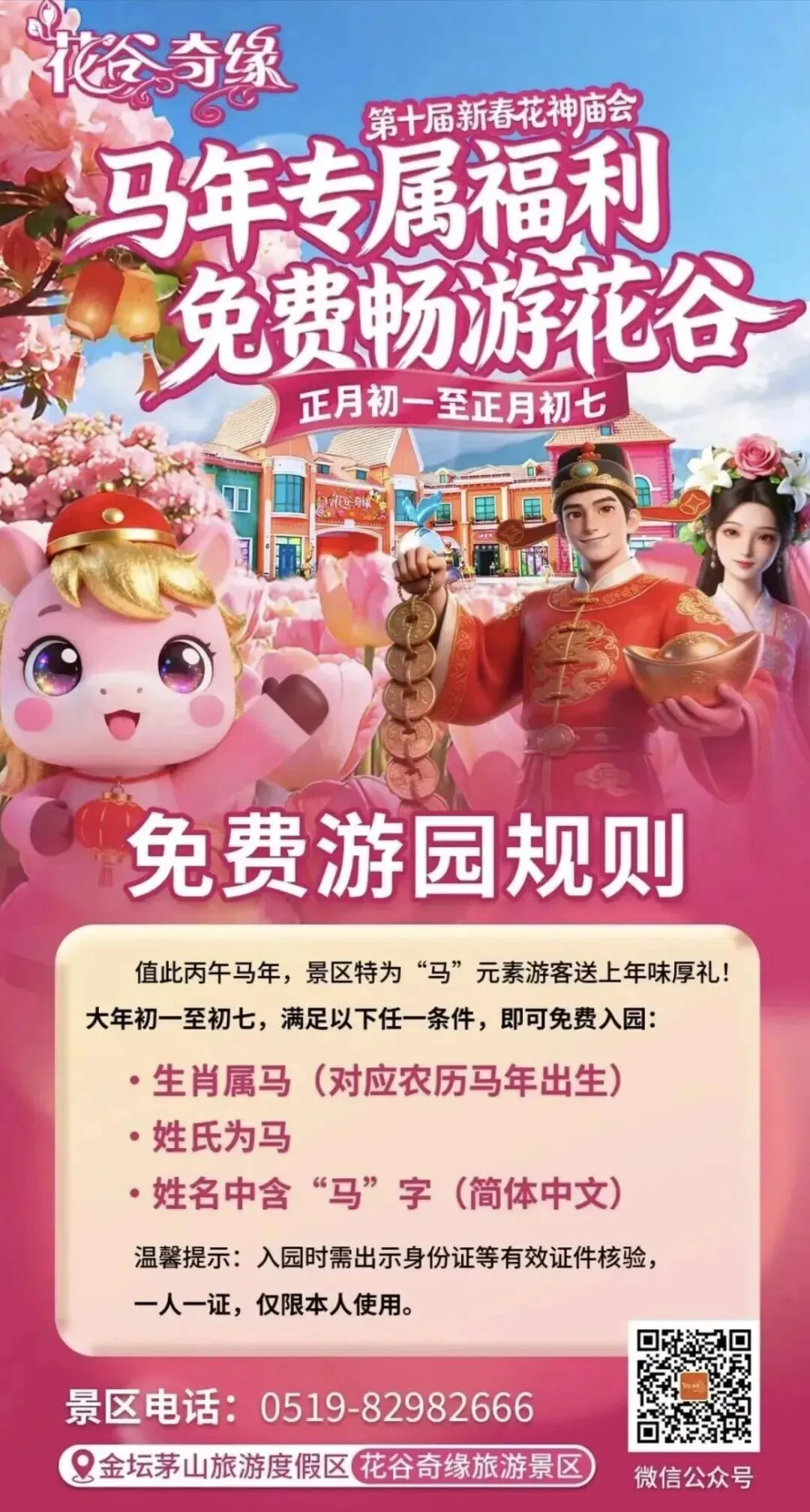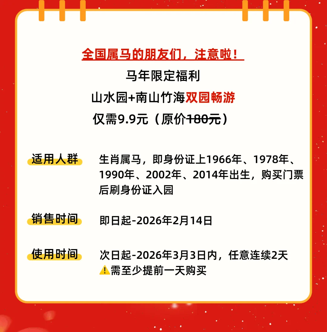 生肖为马或名字带“马”的游客,可凭身份证等有效证件,在景区门口售票处免费兑换门票