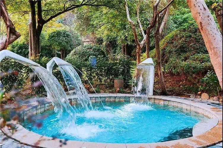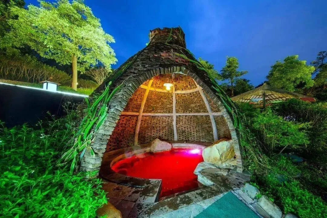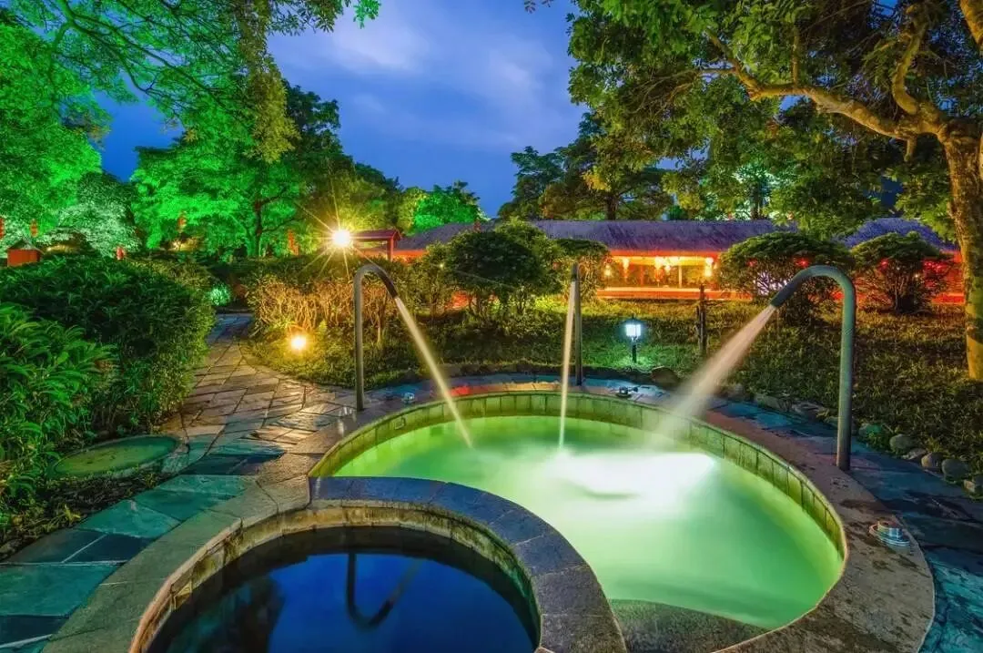园林环抱露天温泉区,各种功效不一的