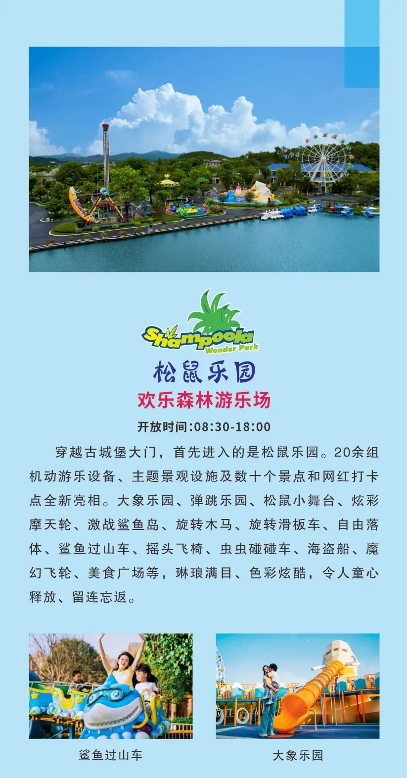 度假村各项目开放时间和文字介绍: