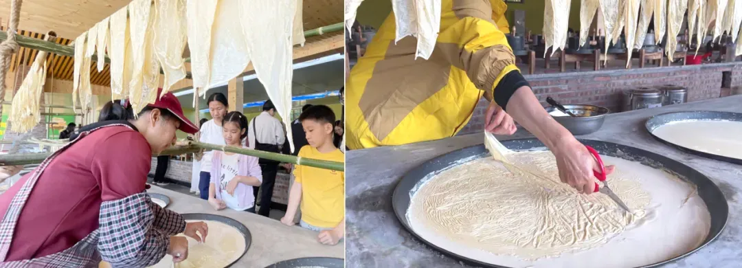现场还可以品尝传统手工制作而成的各类豆制品美食。不仅让游客感受到古法做豆腐的全过程,体验手工磨豆腐,还能品尝豆浆、吃山水豆腐花、腐竹、九龙豆腐,欢迎大家光临体验。