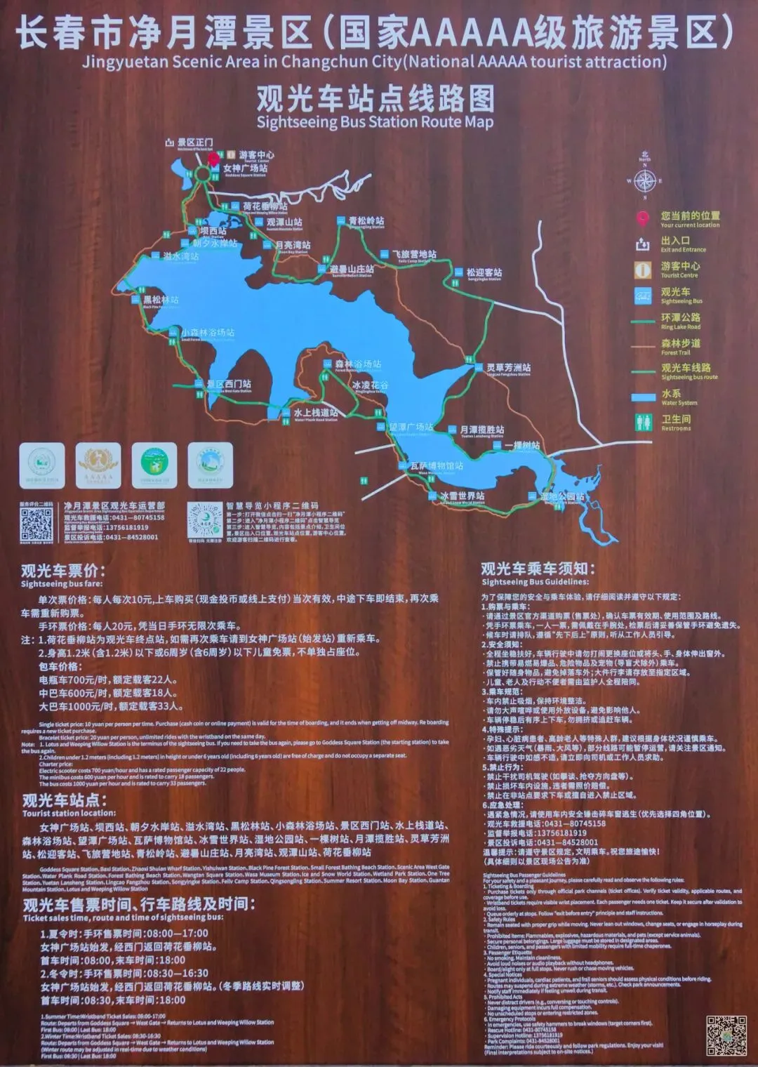 因为景区的面积很大,我们就买了摆渡车的票,这个是净月潭景区观光车站点路线图