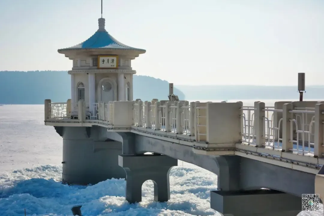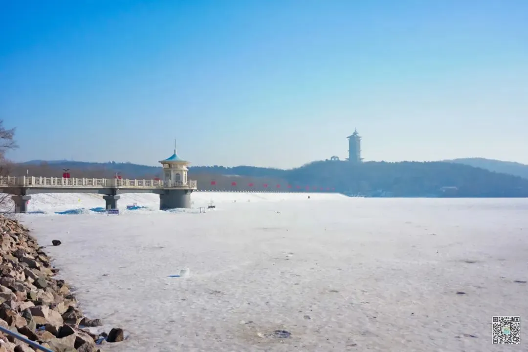 往前走了一些,来到冰面上拍摄放水塔和碧松净月塔楼