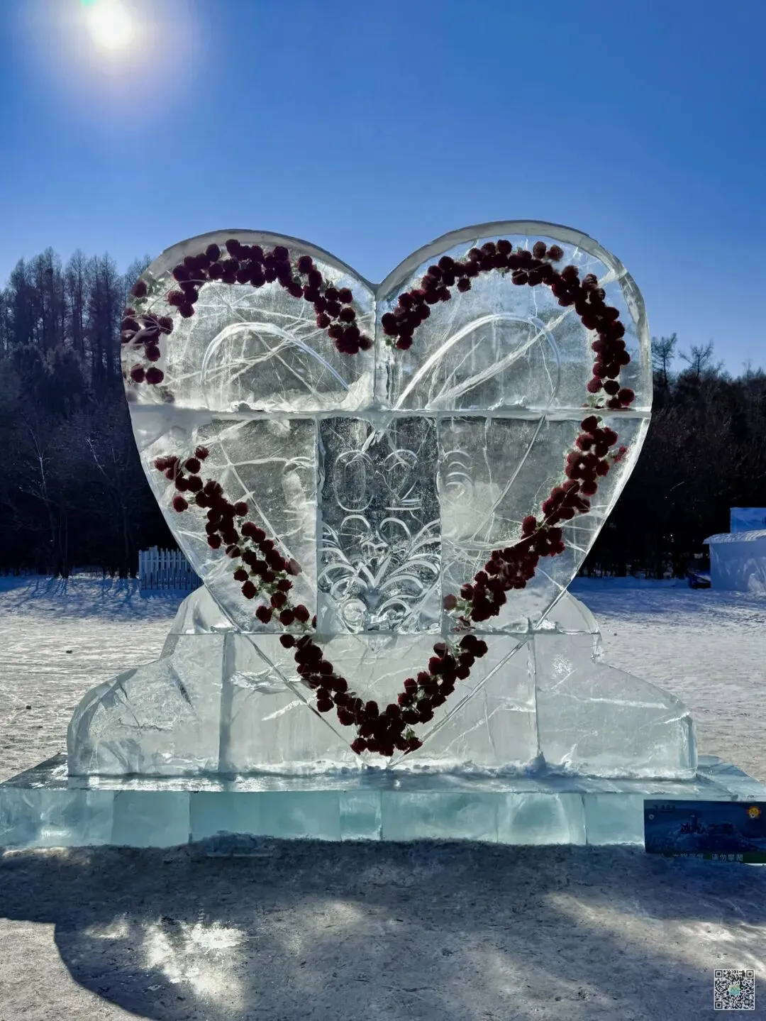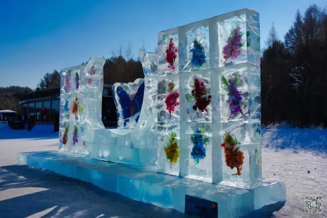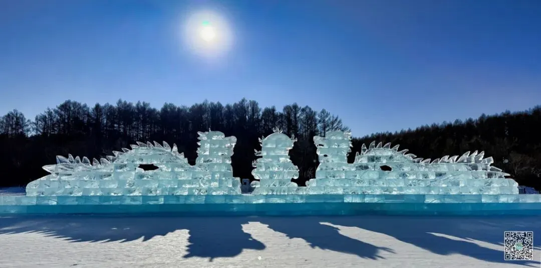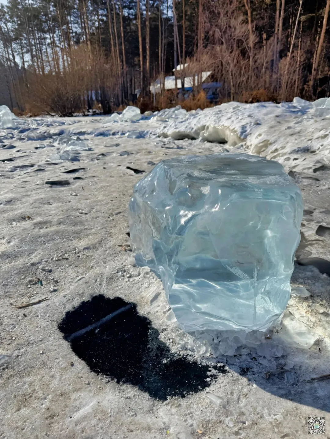 而后我们就来到了小森林浴场,这里的冰被用于冰雕造景,这里有很多取冰时留下的碎冰,冰是蓝色的,很漂亮