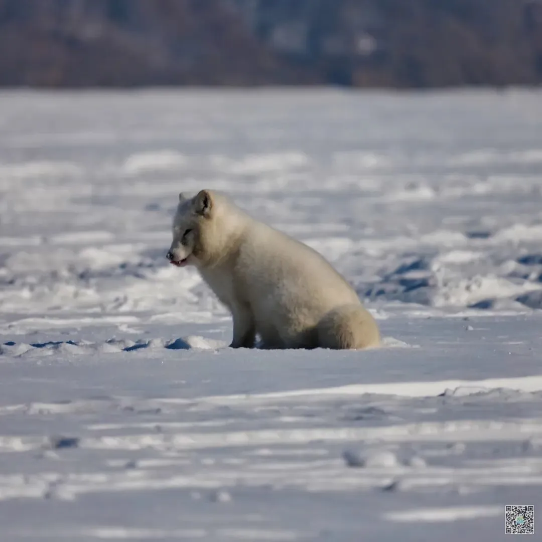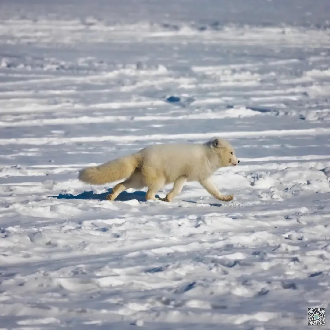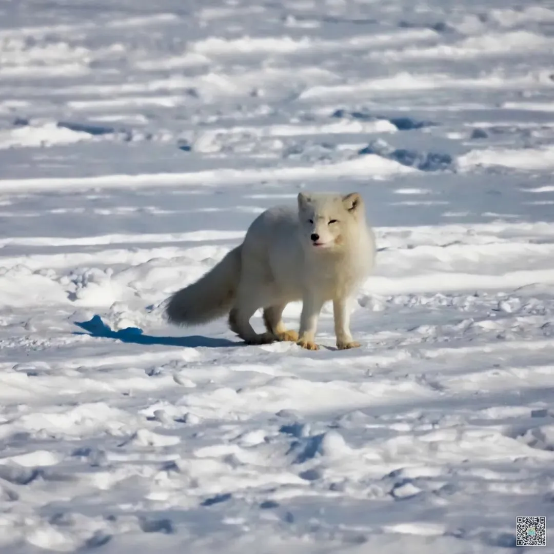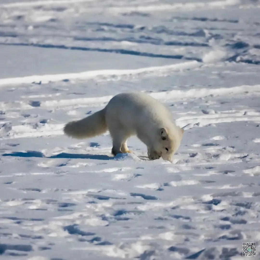 在这里我们还碰到了一只漂亮的小雪狐,小家伙还和雪狐嘻嘻玩儿耍了一会儿
