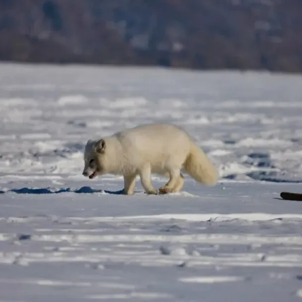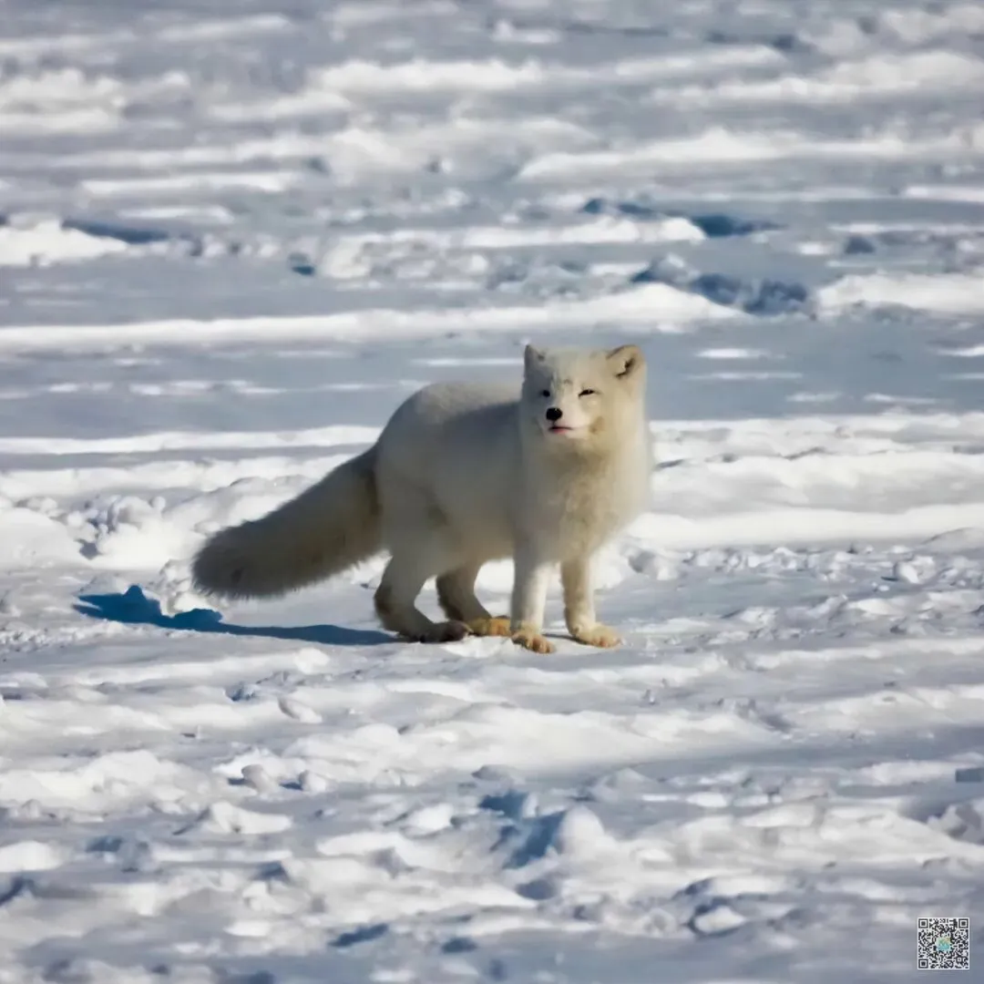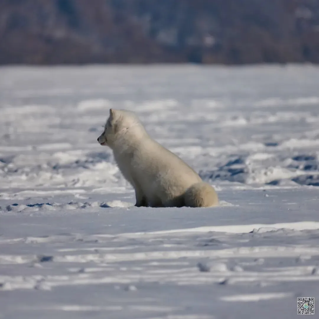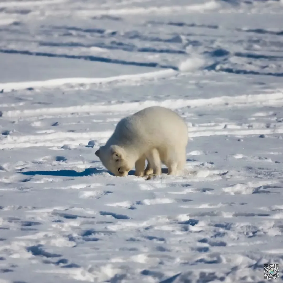 在这里我们还碰到了一只漂亮的小雪狐,小家伙还和雪狐嘻嘻玩儿耍了一会儿