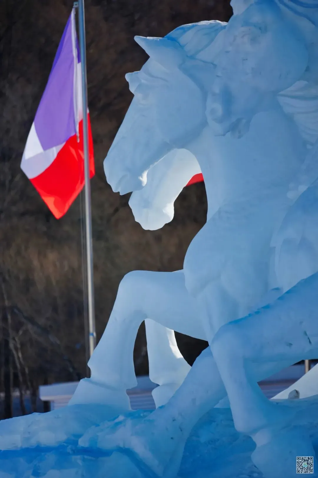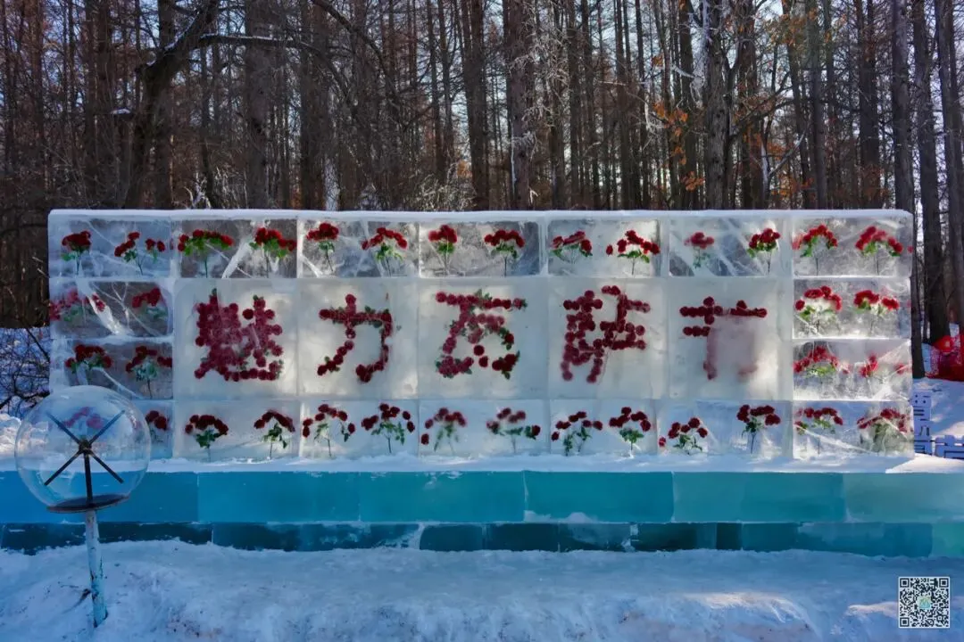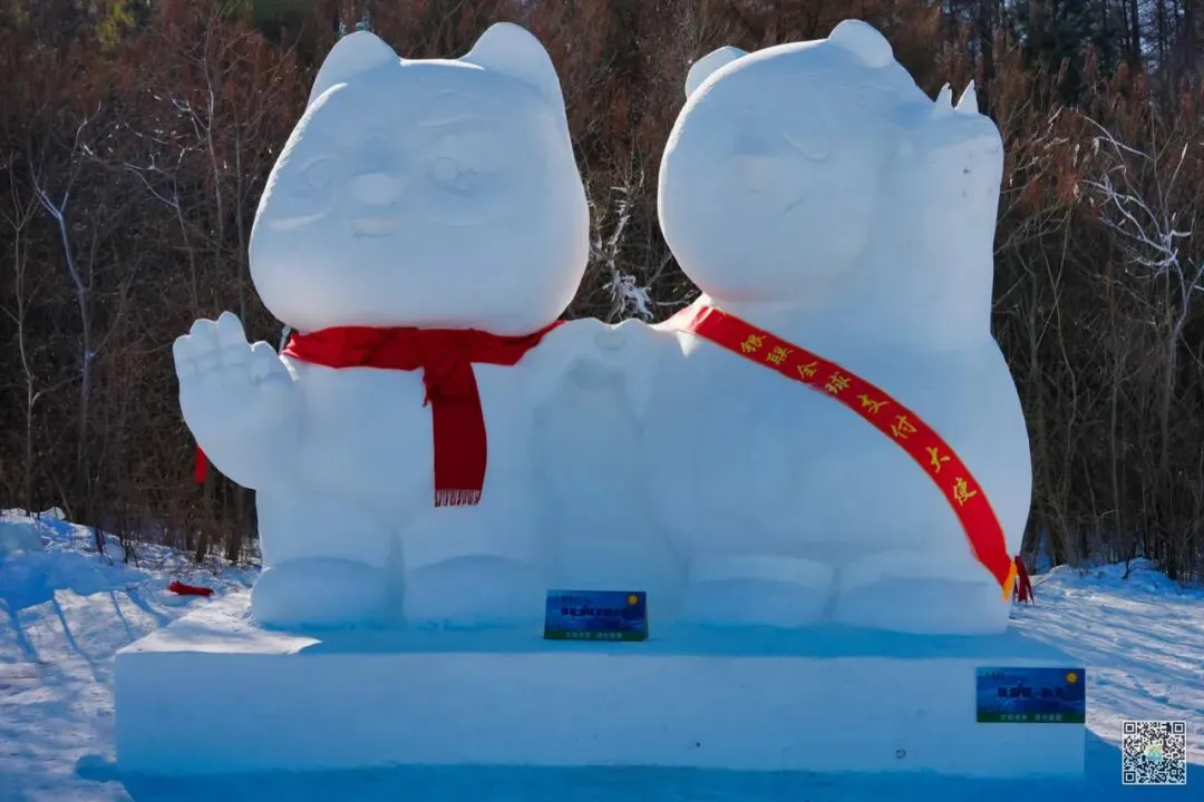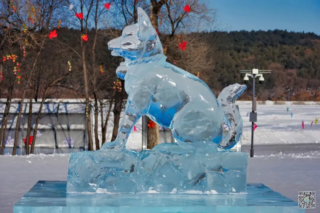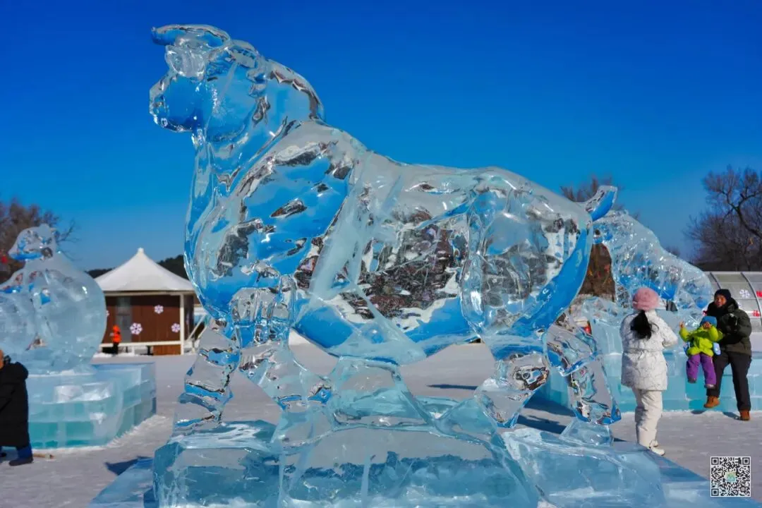 而后我们就来到了冰雪世界站,这是净月潭以森林精灵松鼠为原型创造的“净净”“月月”的IP形象的雪雕