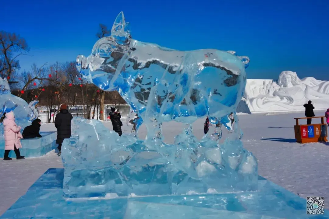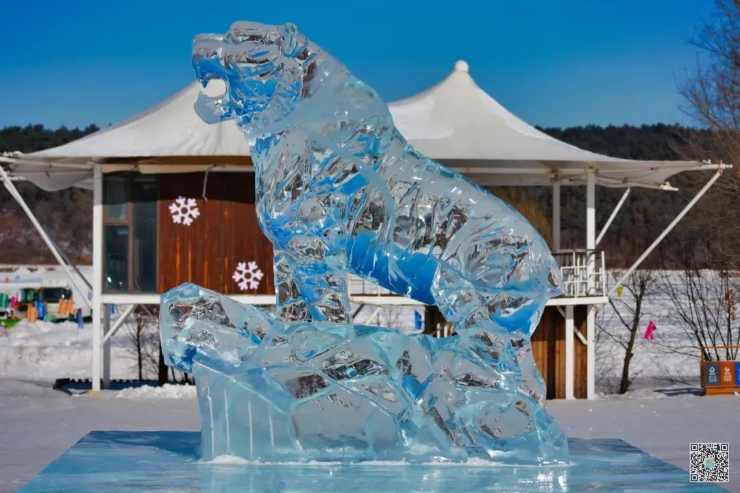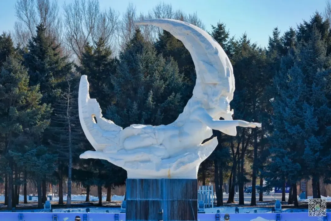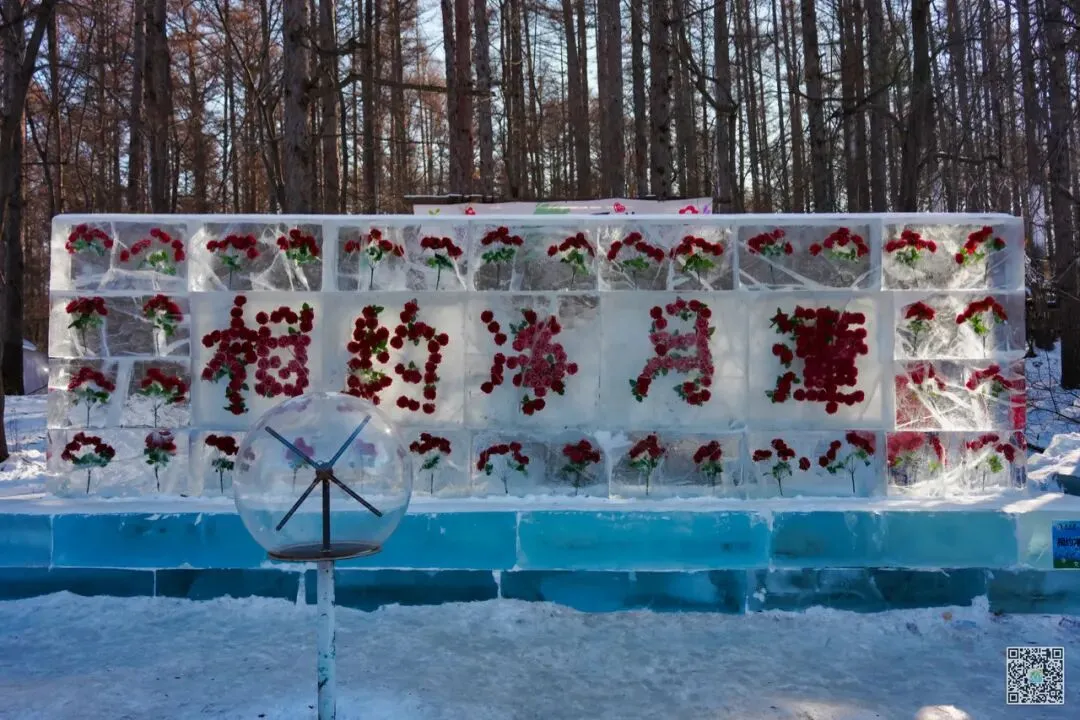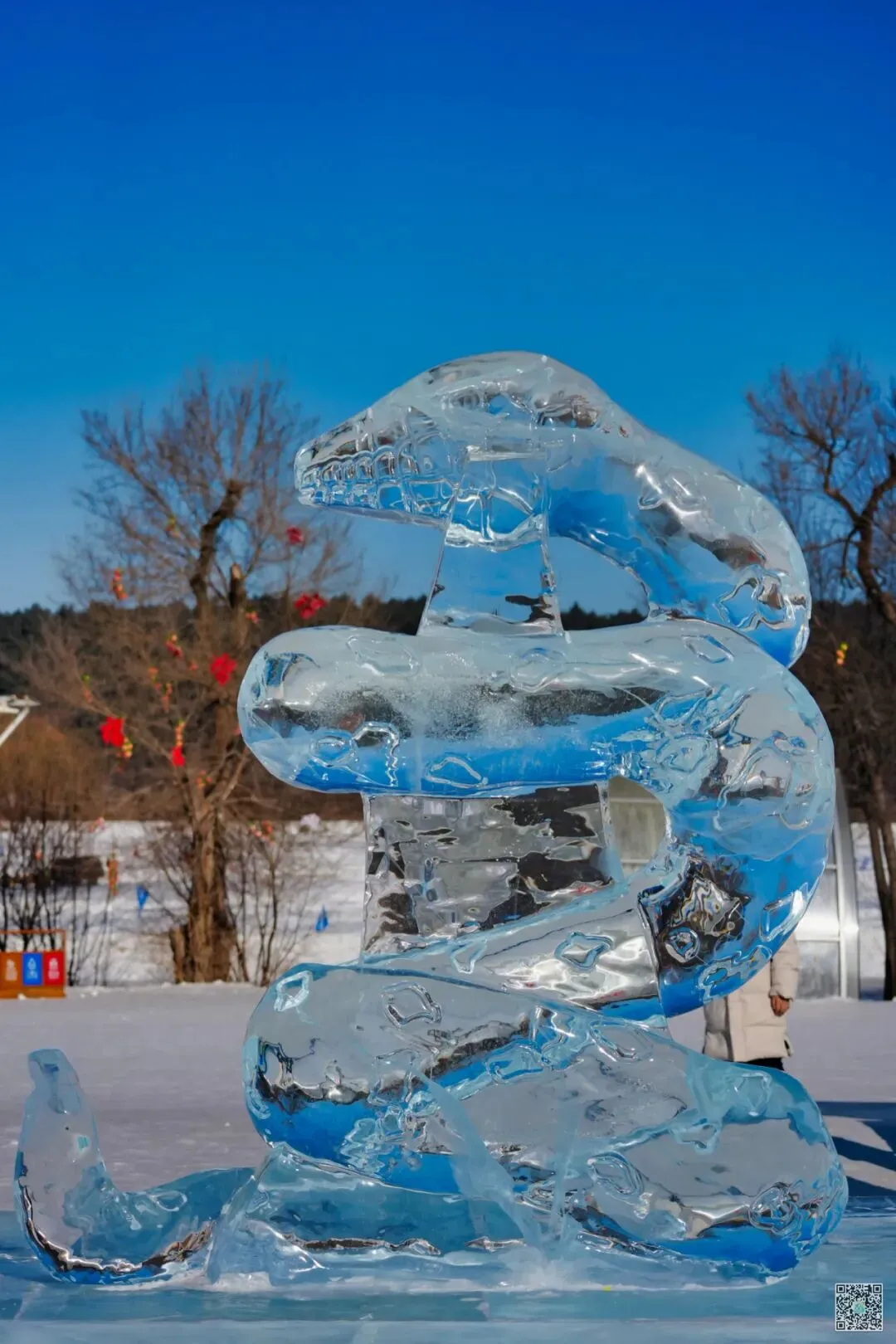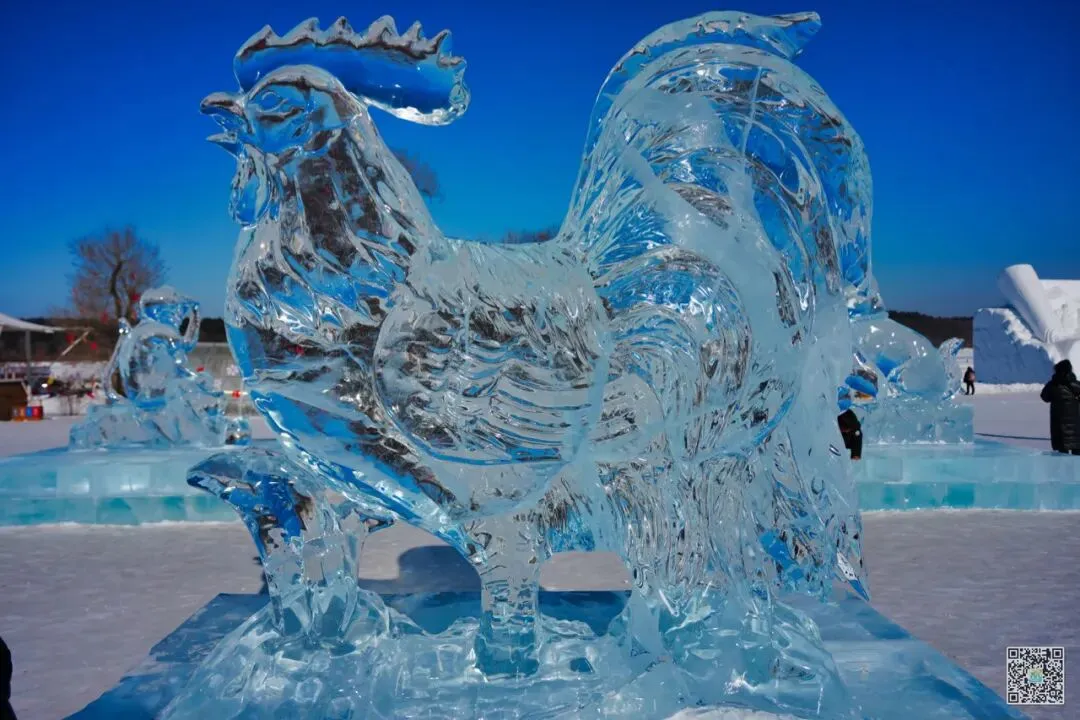 而后我们就来到了冰雪世界站,这是净月潭以森林精灵松鼠为原型创造的“净净”“月月”的IP形象的雪雕