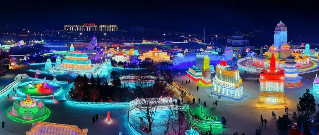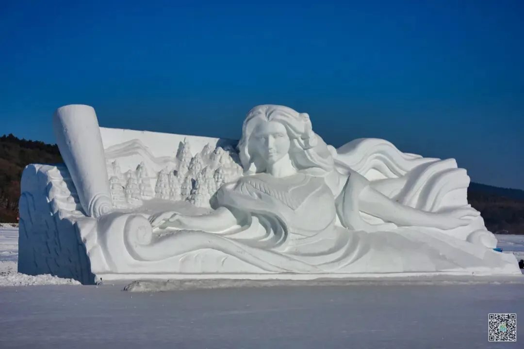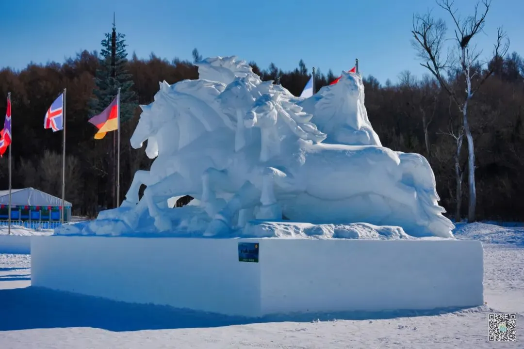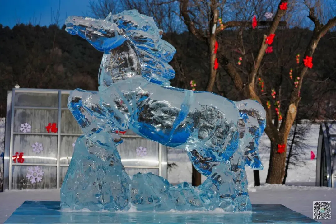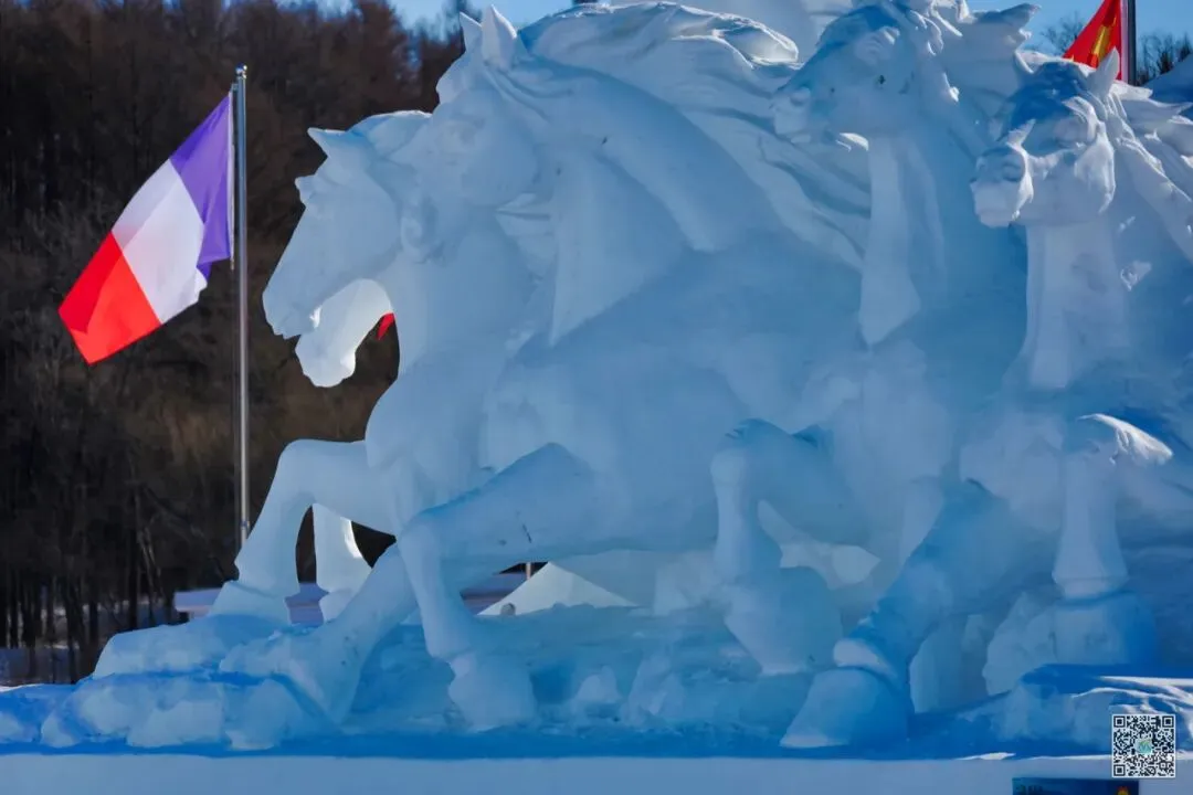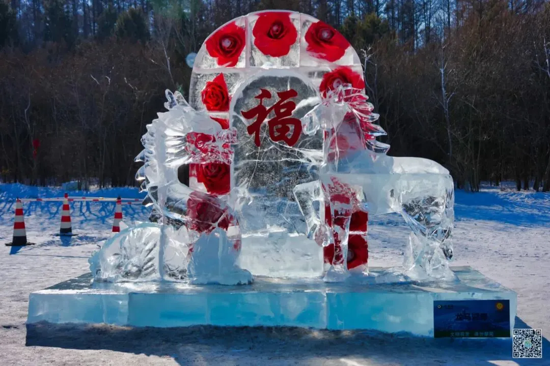 而后我们就来到了冰雪世界站,这是净月潭以森林精灵松鼠为原型创造的“净净”“月月”的IP形象的雪雕