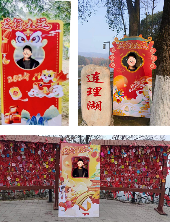 2024年2月13(初四)至2024年2月29日,九真山风景区在大门假山处、连理湖、锁情台设置门型框祈福打卡点,锁情台开展有系祈福带(锁情台有售,游客自行按需购买)活动,游客可在朋友圈或抖音发布以上三个打卡点的打卡照片或视频可在游客中心参与抽奖活动一次,为新的一年祈福添彩。