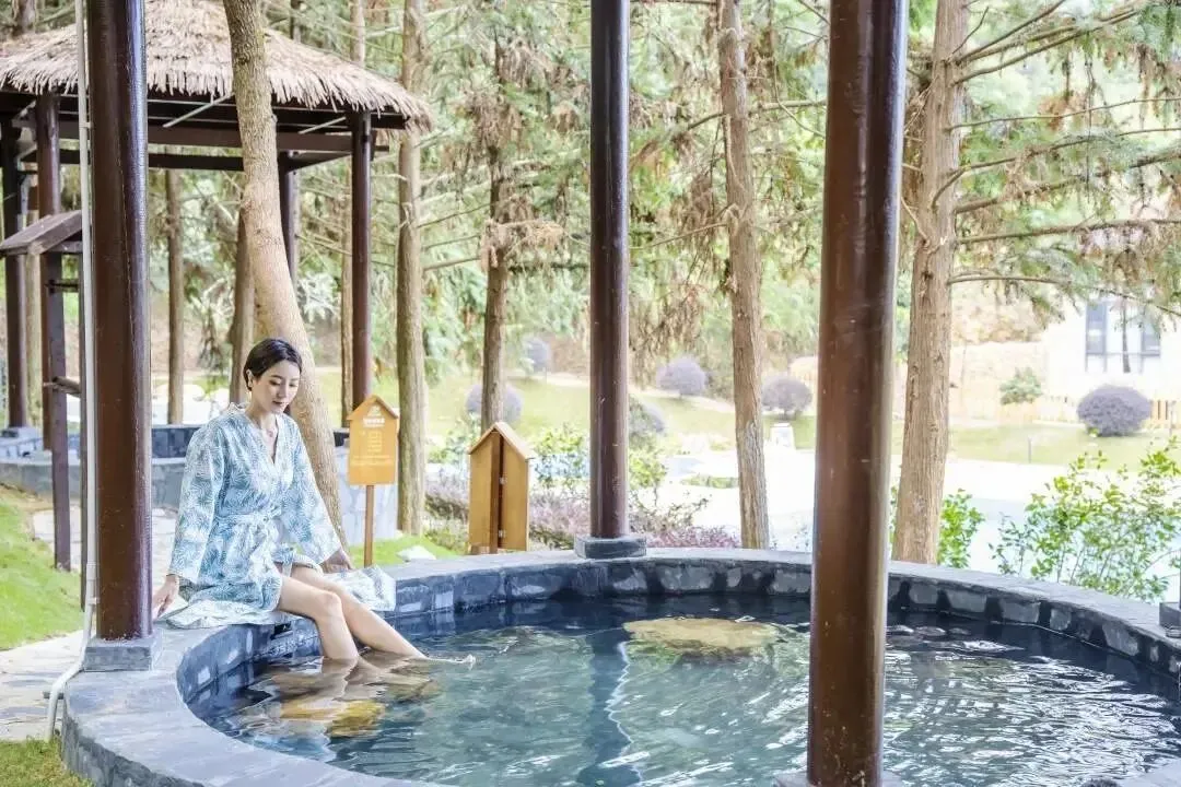 ②酒店温泉介绍:酒店拥有大规模的温泉池群(天然偏硅酸温泉),出水温度43摄氏度,适合全季候、全龄层浸泡。拥有4个精心雕琢的温泉泡池,错落有致的立于溪谷秘境之中,温泉开放时间:下午18点-晚上22点,晚上9点停止进场,具体开放时间和池子数量以景区为准,文案仅供参考