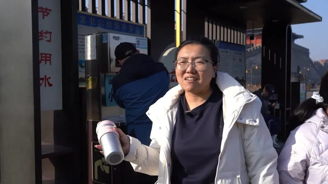 在南城门、阳和楼、荣国府等核心景区的直饮水点,接水的游客络绎不绝。直饮水设施设置35℃、45℃温水与常温水的多元挡位,兼顾老人、儿童等不同人群饮用需求,市民游客都能按需取用。