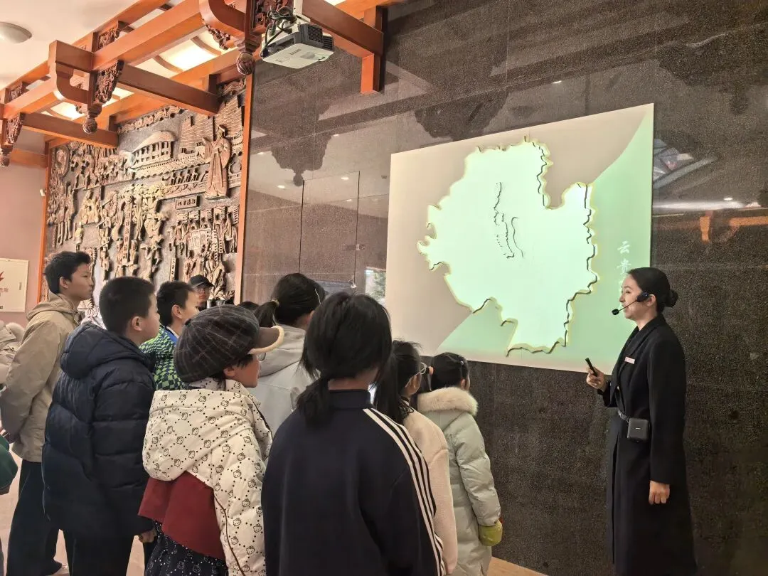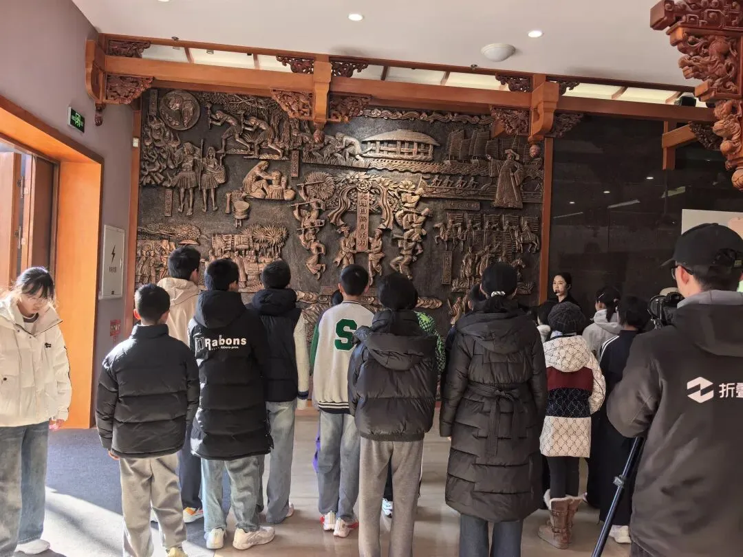 一入展厅,就遇到一位讲解员老师刚刚开始给一队同学讲解,旁边还有两位摄影师在跟拍。