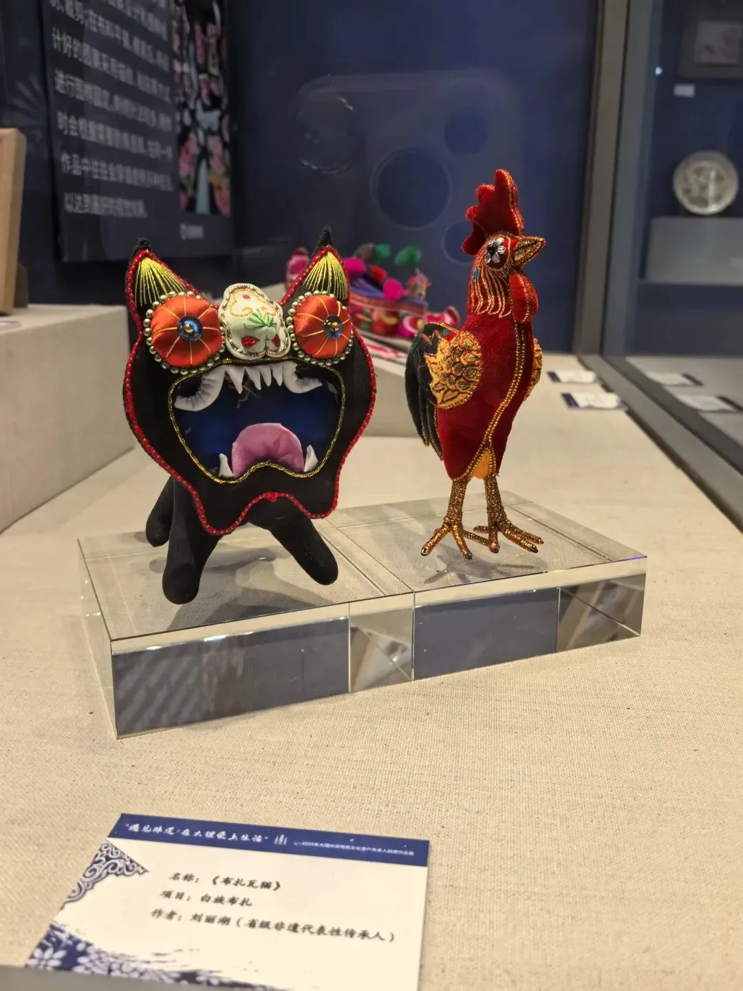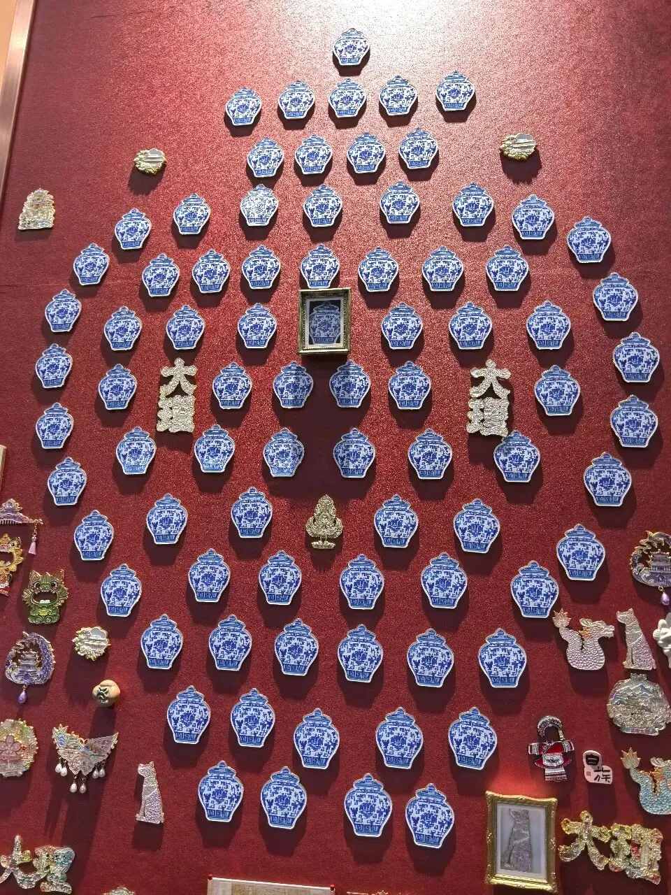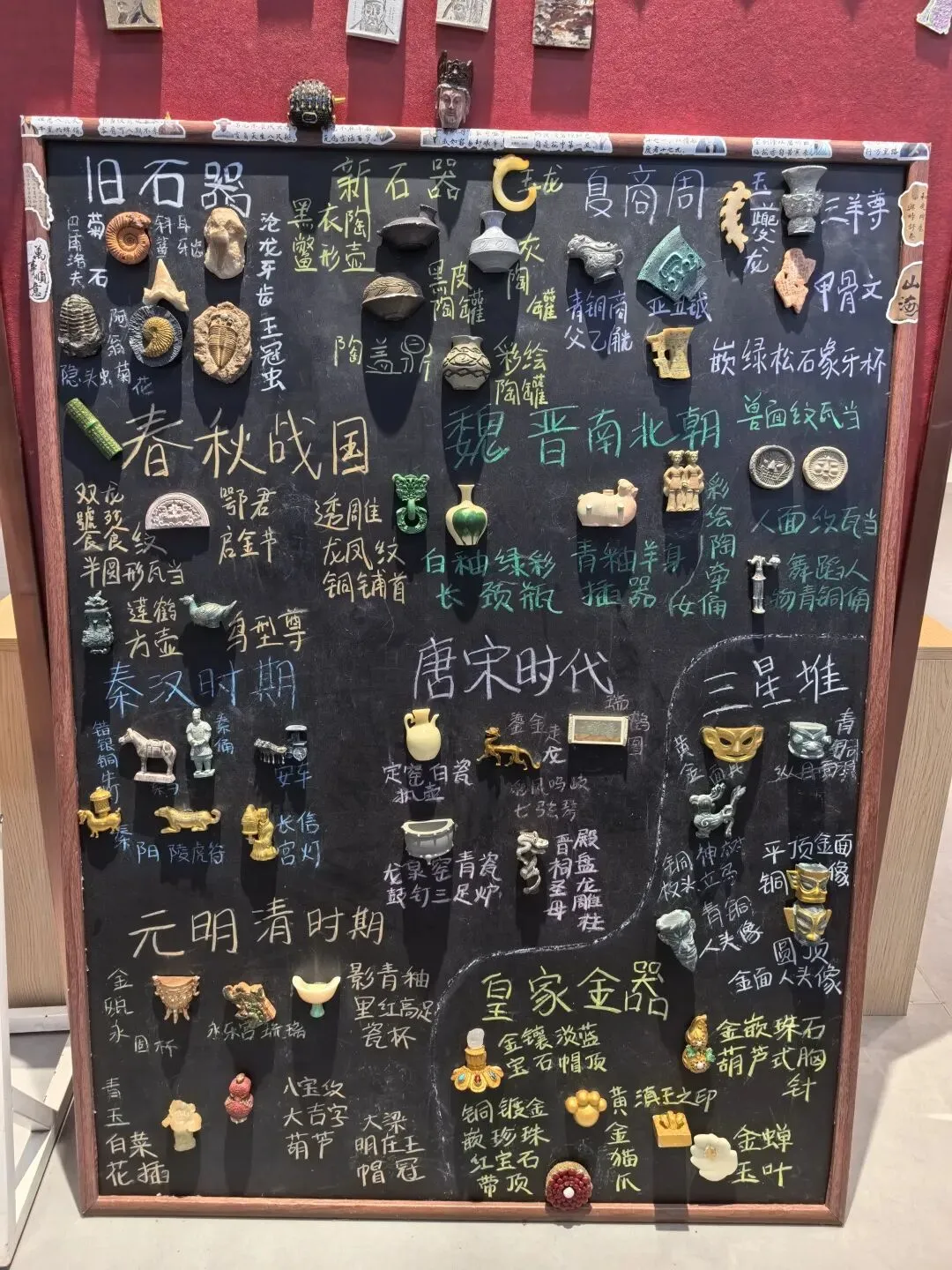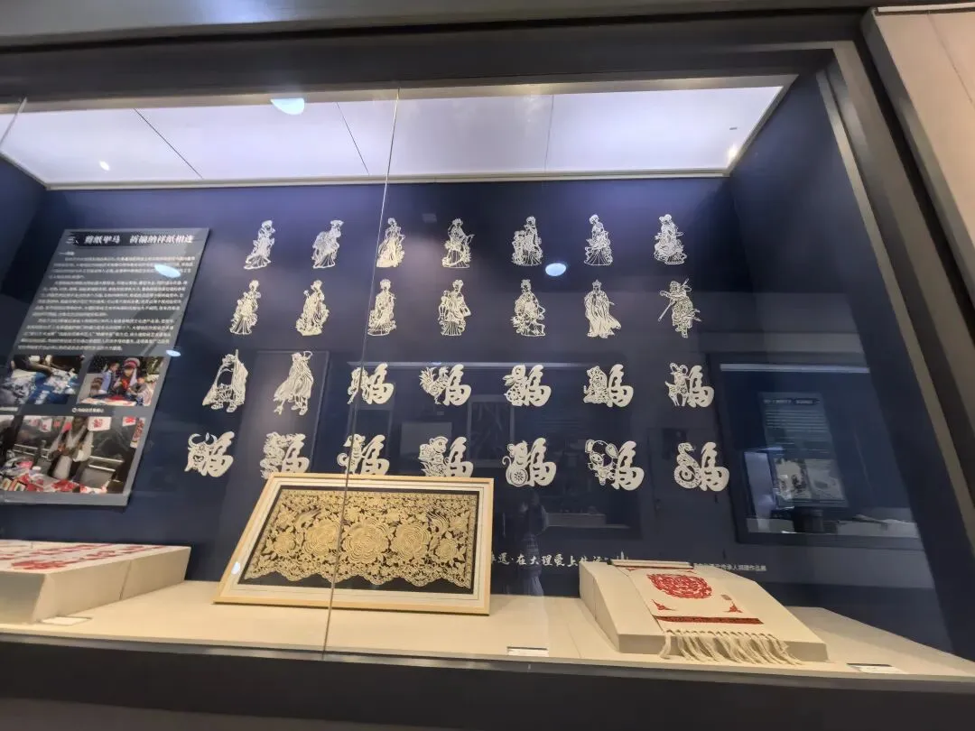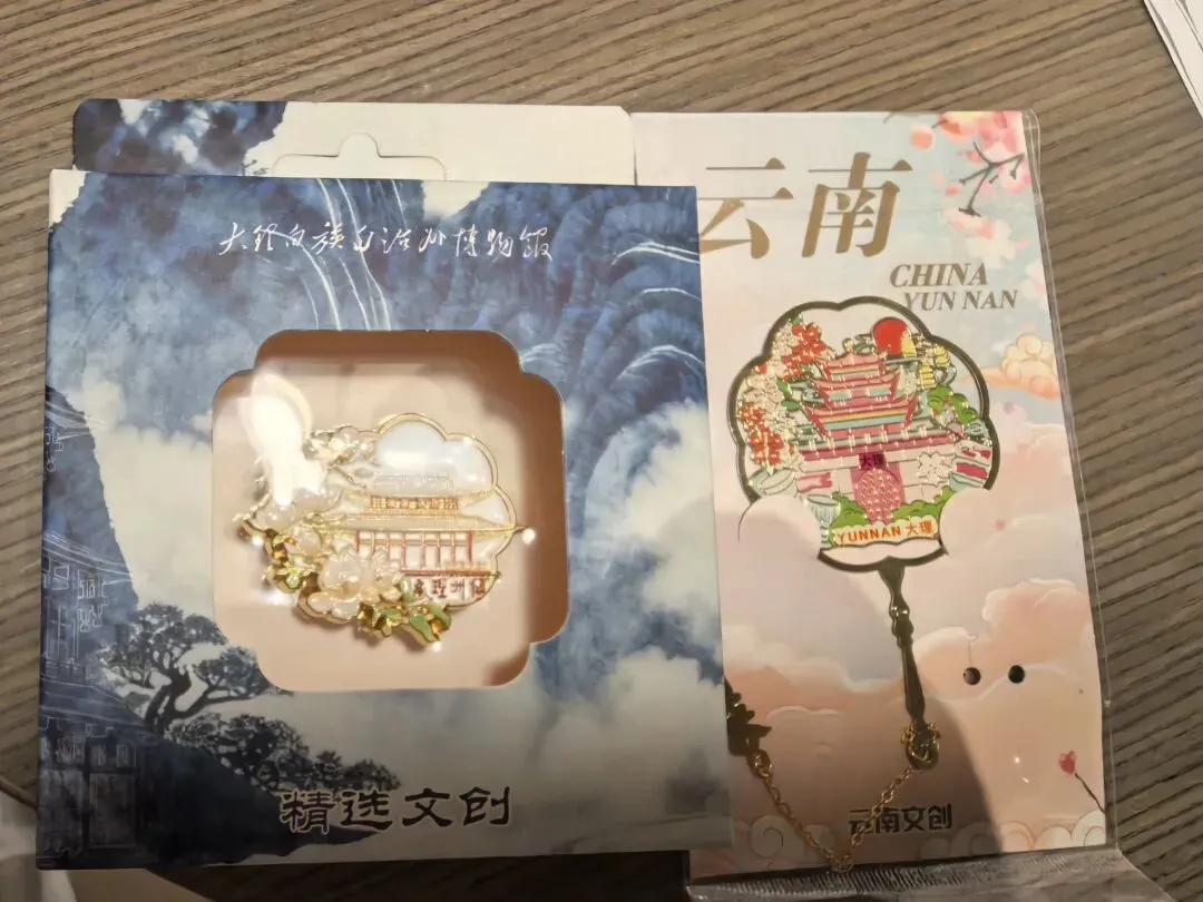 车辚辚,马萧萧,行人弓箭各在腰。耶娘妻子走相送,尘埃不见咸阳桥。牵衣顿足拦道哭,哭声直上干云霄。 道傍过者问行人,行人但云点行频。或从十五北防河,便至四十西营田,去时里正与裹头,归来头白还戍边。边庭流血成海水,武皇开边意未已。。。902年,南诏亡,907年,唐王朝也走到尽头。过多的战争,劳民伤财,最终必定两败俱伤。其实我们一开始参观跳过了新石器时代的部分,因为前面带队的博物馆老师正好带着同学们停留在那附近,我只好带着小添绕过去。但是展厅不大,游客很少,能够听见老师的声音。我清楚听到她饱含感情地介绍了参与大理考古工作的曾昭燏,于是也带着小添在这里驻足。娃还太小,不能理解太多。所以我只是告诉她有两位了不起的女性考古专家,一位是樊锦诗老师,60年保护敦煌壁画,至今还在工作;另一位已经去世,就是这位曾昭燏老师。(其实还有其他几位,我回来查资料才知道)凝视着先生年轻时的照片,想到她后来的境遇,内心忍不住一声叹息。。带娃看博物馆没办法久留,我们来到文创店。元代青花瓷瓶也是重要展品之一。我个人喜欢这磁吸板,展示了不同历史时期的文创(来自不同博物馆)接下来去看了大理非遗作品展厅,小添更喜欢这里,在很多展品前都赞叹不已。————————————