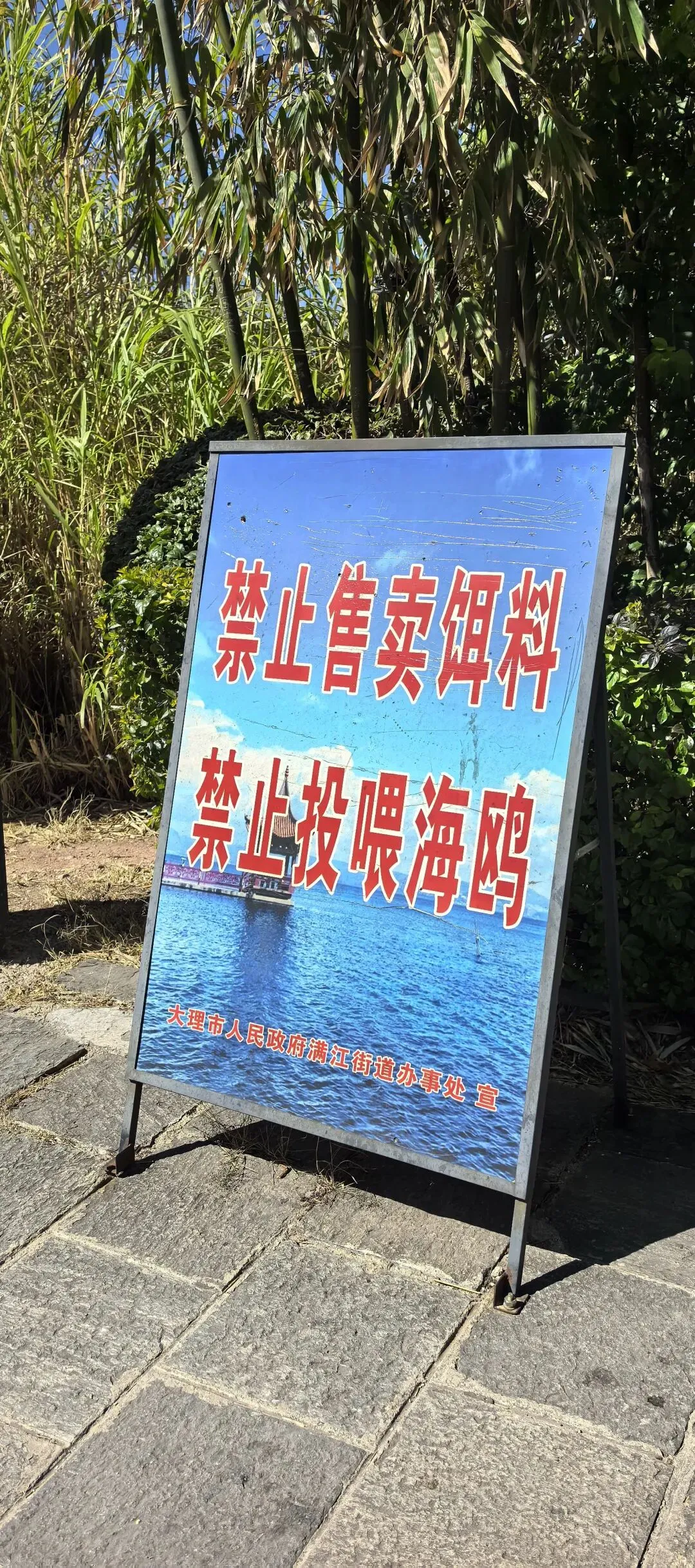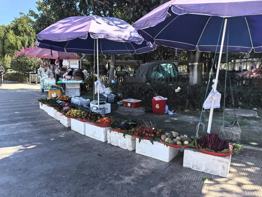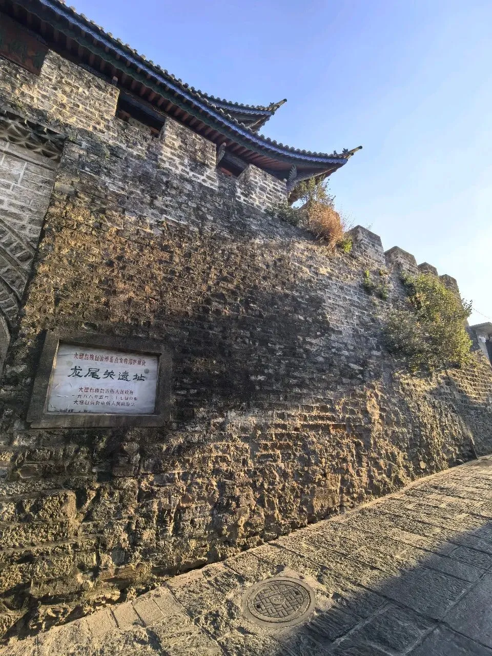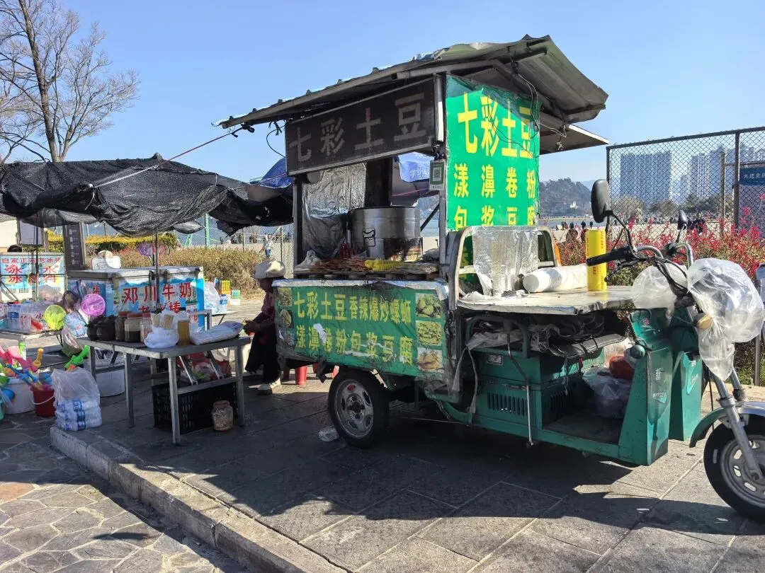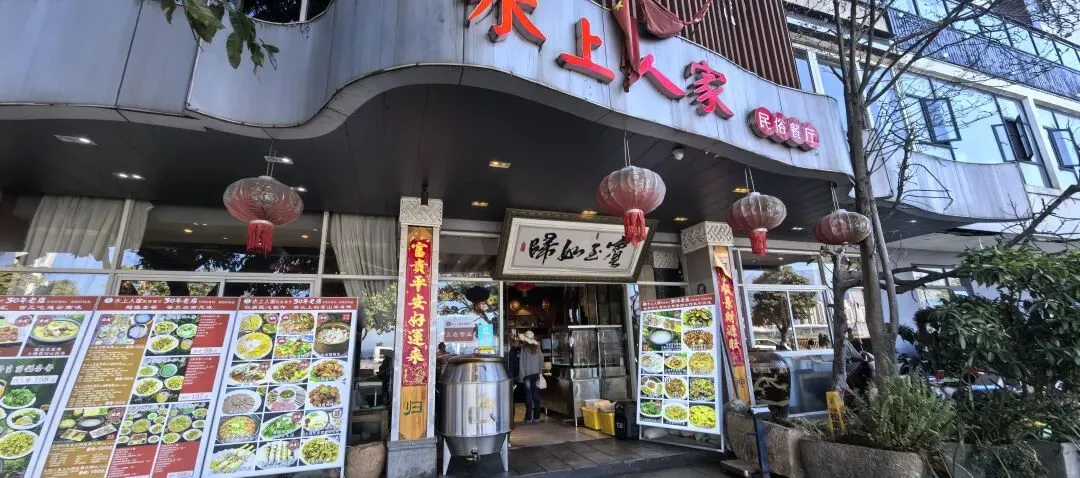 右边这种水果是第一次看到,感觉非常漂亮,好奇的买了一点,洗完后尝尝特别像蜜饯的味道,我个人不喜欢,队友却说好吃。不过我们最后买了两盒蓝莓,因为摊主让我们先尝了几颗,太惊艳了。我在上海经常买蓝莓,但是从来不知道真正的新鲜蓝莓居然口感可以这么好。先不说味道如此之好,价格还这么便宜,十元两小盒,真是特别羡慕云南的朋友们。走到洱海公园附近的时候,先去一旁的便利店买了一大袋白面包,想着等会儿喂海鸥。“百二山河”典出《史记·高祖本纪》,原喻“山河险固,二万兵可敌百万”,是历代形容天险之地的经典说法。明嘉靖年间,四川状元杨慎(升庵)因贬谪途经大理,见苍山为屏、洱海为带,上关龙首、下关龙尾两关扼守要道,地势险要堪比“百二秦关”,遂挥笔题写此四字,原匾嵌于下关玉龙关城楼,成为大理的地理名片。(杨慎这个名字可能不那么知名,但是他的《临江仙·滚滚长江东逝水》作为《三国演义》开篇,却随着同名电视剧的播放而广为传诵。)来自西伯利亚的红嘴鸥们,更给这片蓝色增加了灵动和浪漫。来到这里之后真的啥也不想干,只想在洱海边坐着发呆。(当然不可能,因为娃每天心心念念要喂海鸥)然而突然看到这个通告牌。额,有点意外,也有点失望。(虽然一路上还是有小商贩在兜售鸥粮)不过既然有了官方规定,是为了保护水源,我们只能遵守。反过来想,如果不喂鸥的话,就只能一心一意专心看风景,其实也不失为一种享受和收获。我们特意不去龙龛码头或者网红S弯这些地方,而是来到洱海公园,确实选对了,这里游客很少,非常安静。偶然碰到的一些,要么在和我们一样散步,要么坐在长椅上安静拍视频。把双肩包上挂着的胡迪取下来,让他代替我在围栏上坐了一会 。小添不能喂海鸥,有点百无聊赖,开始爬栏杆往前。女汉子的本性暴露无疑。终于走到“水上人家”饭店对面。我已经在地图上做好标记,但是大众点评上有点褒贬不一。正好有几位游客刚从里面出来。我问他们这家口味如何,他们说很好吃,而且很便宜,于是我们走进去,也上了4楼。下午两点半,早已过了饭点,我们得以坐到靠窗的绝佳位置。小添不能吃辣,给她点了片皮鸭,但是原材料是云南本地小麻鸭。这盘“白族杀猪菜”超大一盆,但是不太对口味,主要是被名字吸引了。(联想到前不久网友们奔赴呆呆家去杀猪的新闻,哈哈哈)来云南不能不吃米线。这是最便宜的一种,39元。摆盘简直像艺术品:以为这就完了?米线还送一大碗玫瑰小圆子。扶墙走也吃不完。这一餐得再来2-3人才能不浪费。小添如愿以偿,和爸爸一起喂了红嘴鸥。我负责拍照记录。下午五点,洱海边的风呼呼呼吹的遍体生寒。但是太阳还高,离天黑还有2~3小时,队友提议我们去龙尾关,说这里有历史感。于是我们打车去龙尾关。红袋子里面是新鲜折耳根,大宝喜欢的螺蛳粉里有这个配料,我受不了。。。沿着斜坡路爬高,两边是林立的各种店铺