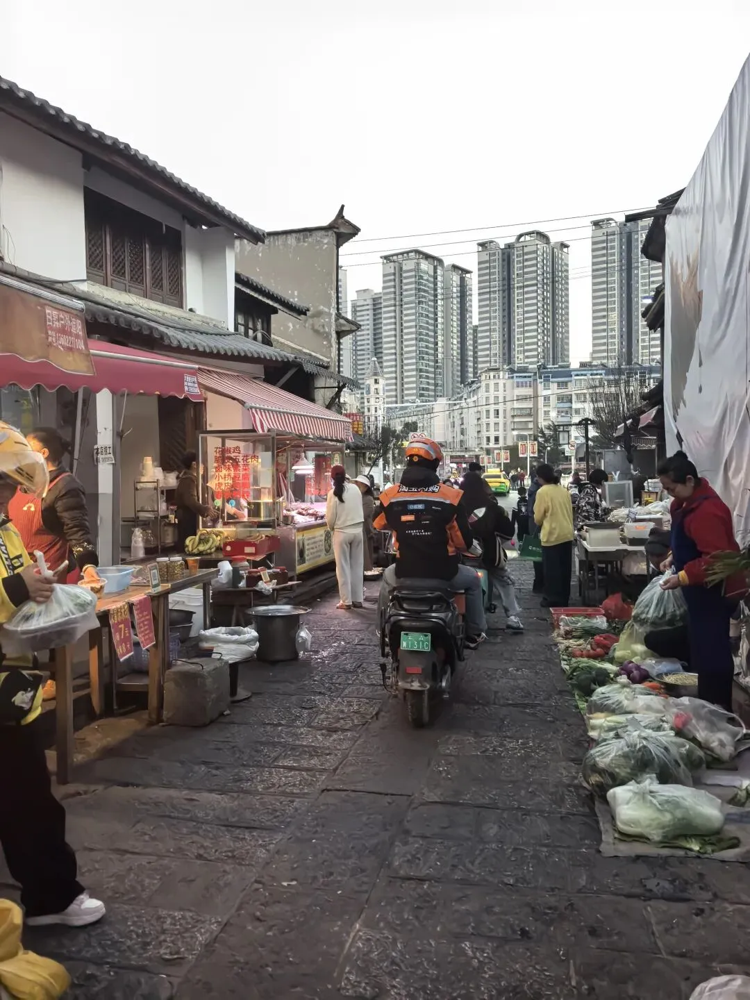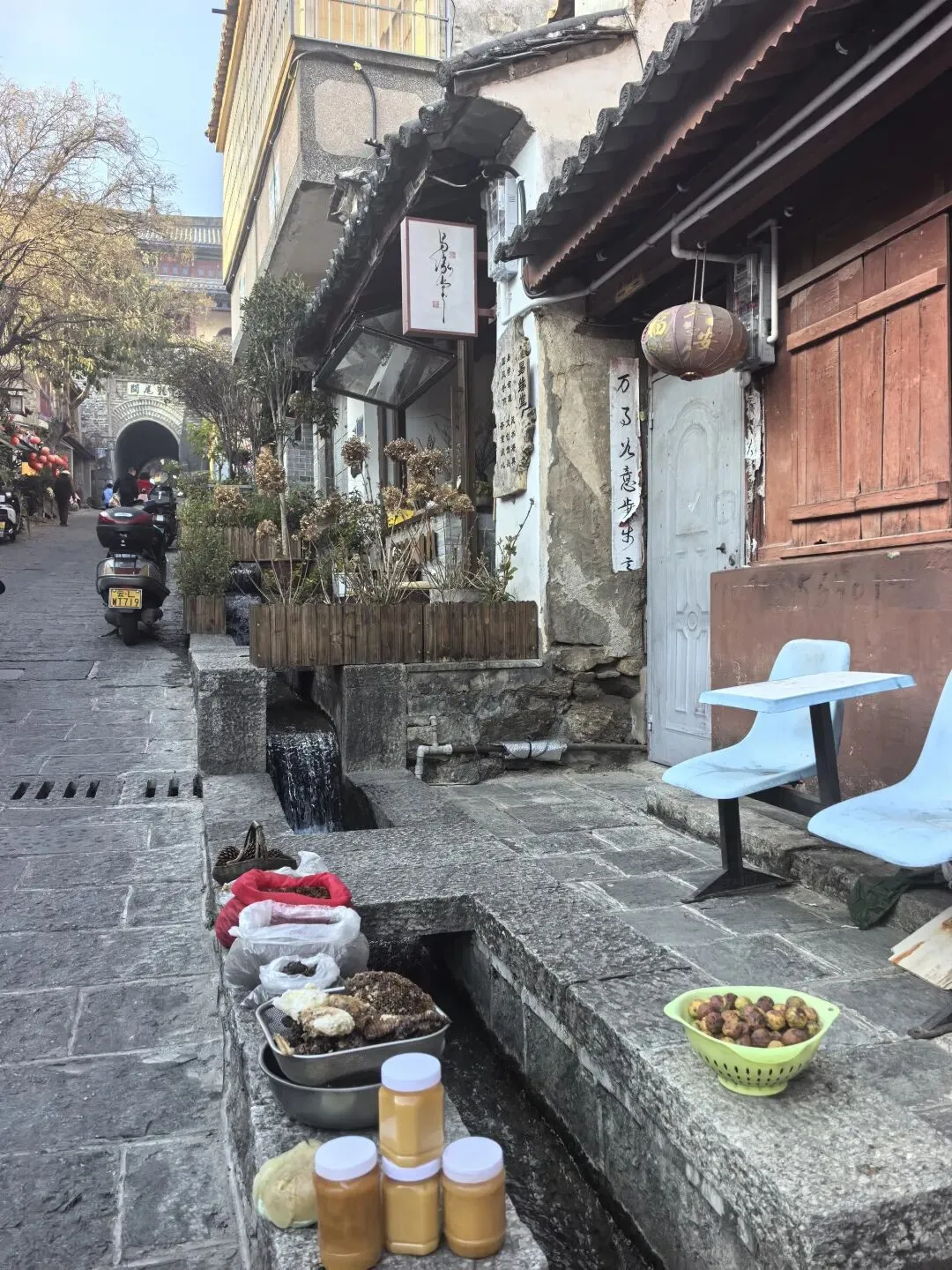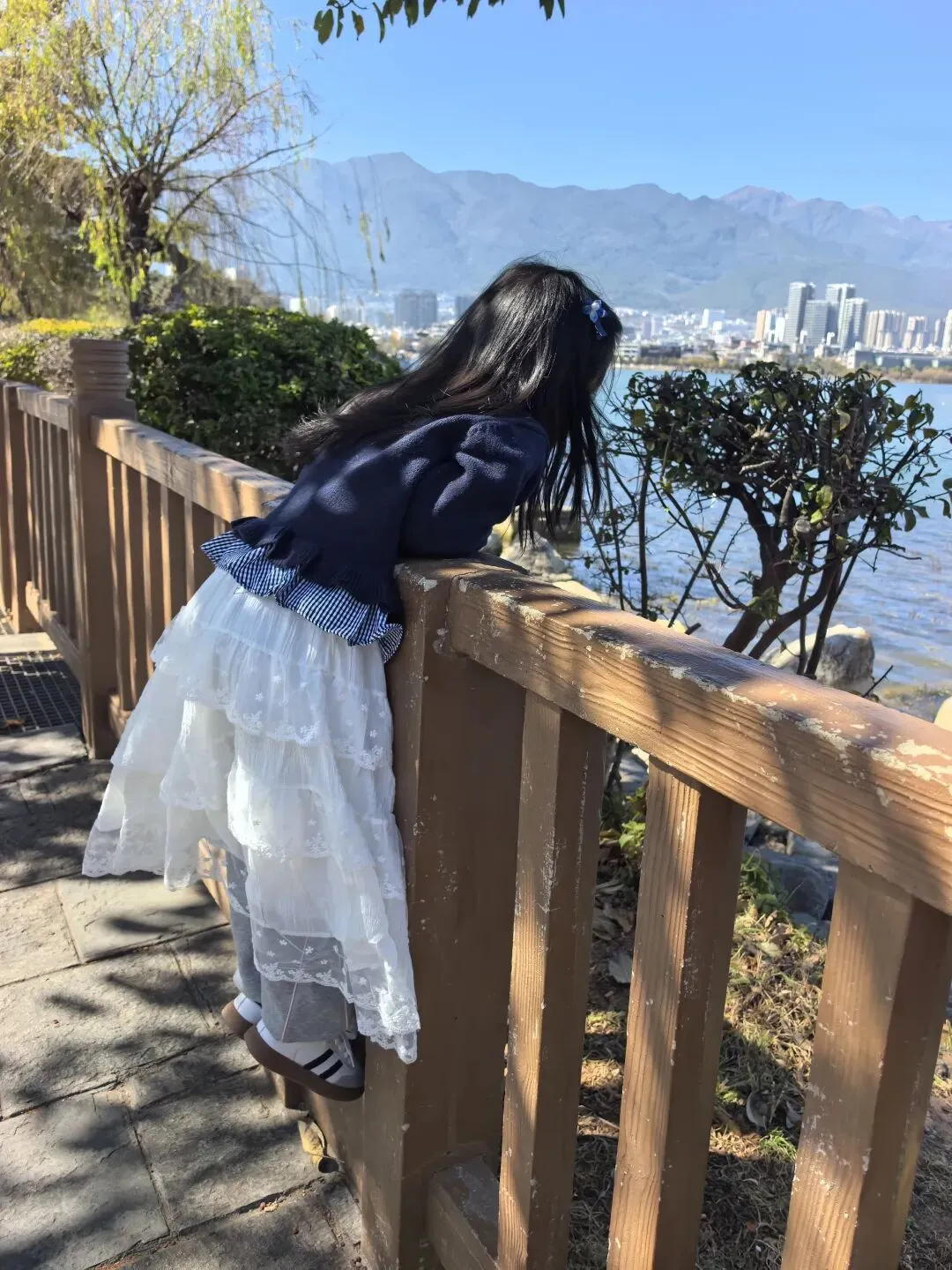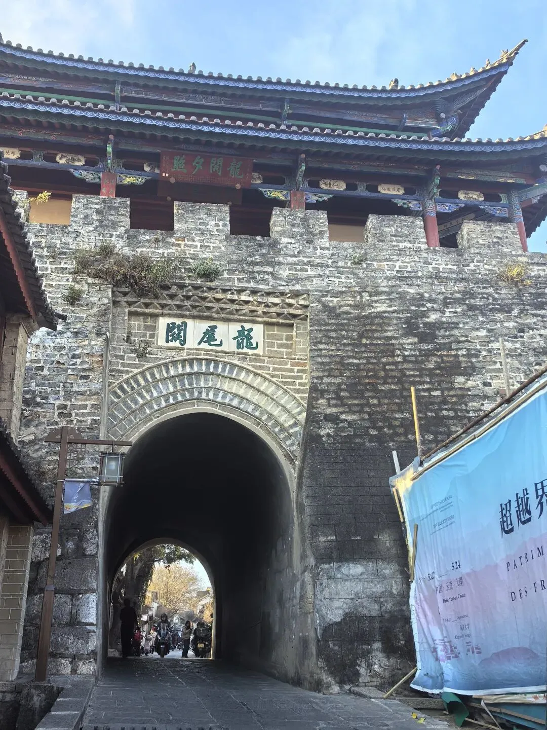 右边这种水果是第一次看到,感觉非常漂亮,好奇的买了一点,洗完后尝尝特别像蜜饯的味道,我个人不喜欢,队友却说好吃。不过我们最后买了两盒蓝莓,因为摊主让我们先尝了几颗,太惊艳了。我在上海经常买蓝莓,但是从来不知道真正的新鲜蓝莓居然口感可以这么好。先不说味道如此之好,价格还这么便宜,十元两小盒,真是特别羡慕云南的朋友们。走到洱海公园附近的时候,先去一旁的便利店买了一大袋白面包,想着等会儿喂海鸥。“百二山河”典出《史记·高祖本纪》,原喻“山河险固,二万兵可敌百万”,是历代形容天险之地的经典说法。明嘉靖年间,四川状元杨慎(升庵)因贬谪途经大理,见苍山为屏、洱海为带,上关龙首、下关龙尾两关扼守要道,地势险要堪比“百二秦关”,遂挥笔题写此四字,原匾嵌于下关玉龙关城楼,成为大理的地理名片。(杨慎这个名字可能不那么知名,但是他的《临江仙·滚滚长江东逝水》作为《三国演义》开篇,却随着同名电视剧的播放而广为传诵。)来自西伯利亚的红嘴鸥们,更给这片蓝色增加了灵动和浪漫。来到这里之后真的啥也不想干,只想在洱海边坐着发呆。(当然不可能,因为娃每天心心念念要喂海鸥)然而突然看到这个通告牌。额,有点意外,也有点失望。(虽然一路上还是有小商贩在兜售鸥粮)不过既然有了官方规定,是为了保护水源,我们只能遵守。反过来想,如果不喂鸥的话,就只能一心一意专心看风景,其实也不失为一种享受和收获。我们特意不去龙龛码头或者网红S弯这些地方,而是来到洱海公园,确实选对了,这里游客很少,非常安静。偶然碰到的一些,要么在和我们一样散步,要么坐在长椅上安静拍视频。把双肩包上挂着的胡迪取下来,让他代替我在围栏上坐了一会 。小添不能喂海鸥,有点百无聊赖,开始爬栏杆往前。女汉子的本性暴露无疑。终于走到“水上人家”饭店对面。我已经在地图上做好标记,但是大众点评上有点褒贬不一。正好有几位游客刚从里面出来。我问他们这家口味如何,他们说很好吃,而且很便宜,于是我们走进去,也上了4楼。下午两点半,早已过了饭点,我们得以坐到靠窗的绝佳位置。小添不能吃辣,给她点了片皮鸭,但是原材料是云南本地小麻鸭。这盘“白族杀猪菜”超大一盆,但是不太对口味,主要是被名字吸引了。(联想到前不久网友们奔赴呆呆家去杀猪的新闻,哈哈哈)来云南不能不吃米线。这是最便宜的一种,39元。摆盘简直像艺术品:以为这就完了?米线还送一大碗玫瑰小圆子。扶墙走也吃不完。这一餐得再来2-3人才能不浪费。小添如愿以偿,和爸爸一起喂了红嘴鸥。我负责拍照记录。下午五点,洱海边的风呼呼呼吹的遍体生寒。但是太阳还高,离天黑还有2~3小时,队友提议我们去龙尾关,说这里有历史感。于是我们打车去龙尾关。红袋子里面是新鲜折耳根,大宝喜欢的螺蛳粉里有这个配料,我受不了。。。沿着斜坡路爬高,两边是林立的各种店铺