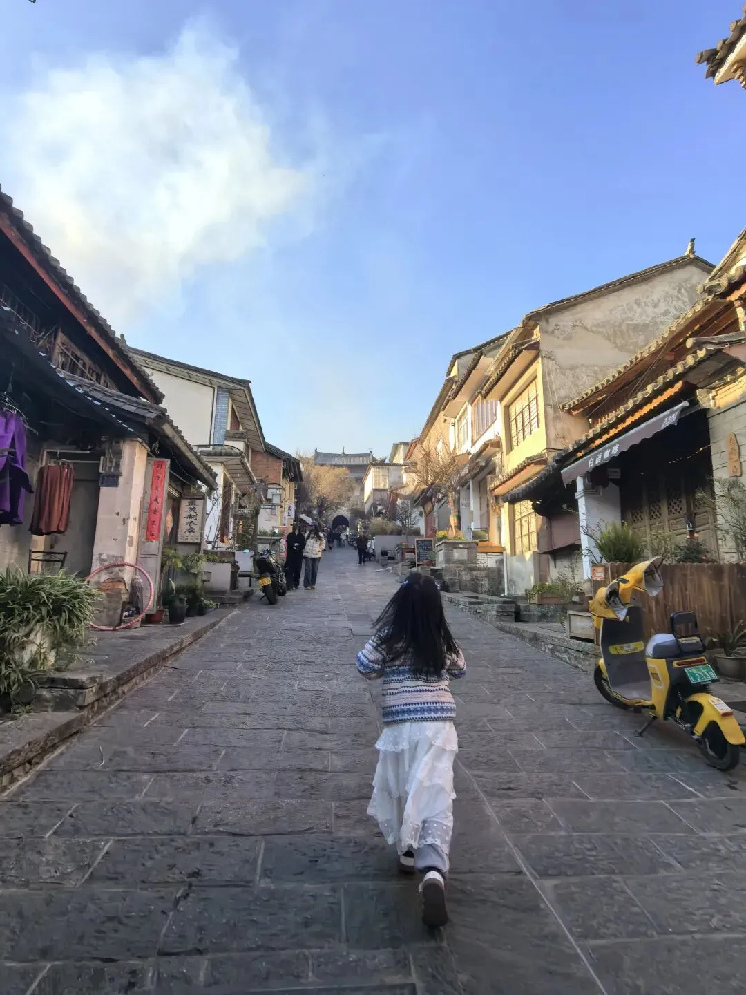 一出门就感觉在云南真是太幸福了,每天都是这样蓝天白云阳光暖暖的。虽然看了不少人预告说在云南需要戴上帽子紫外线很强,我虽然也拿了防晒霜,但一次也没用过。