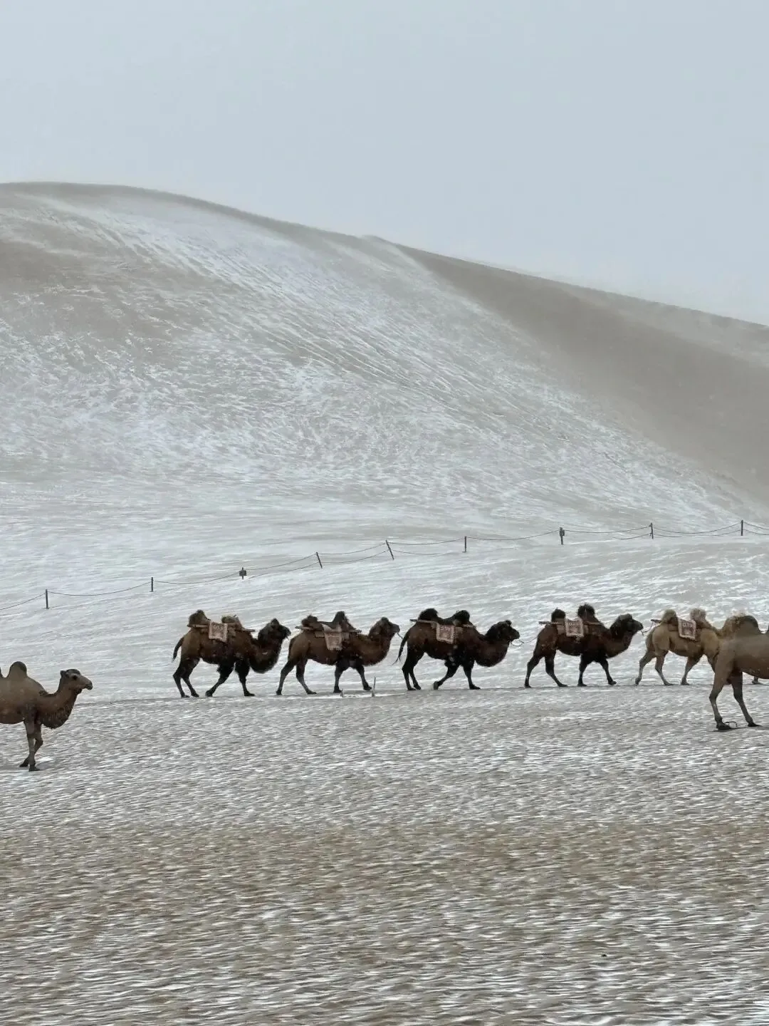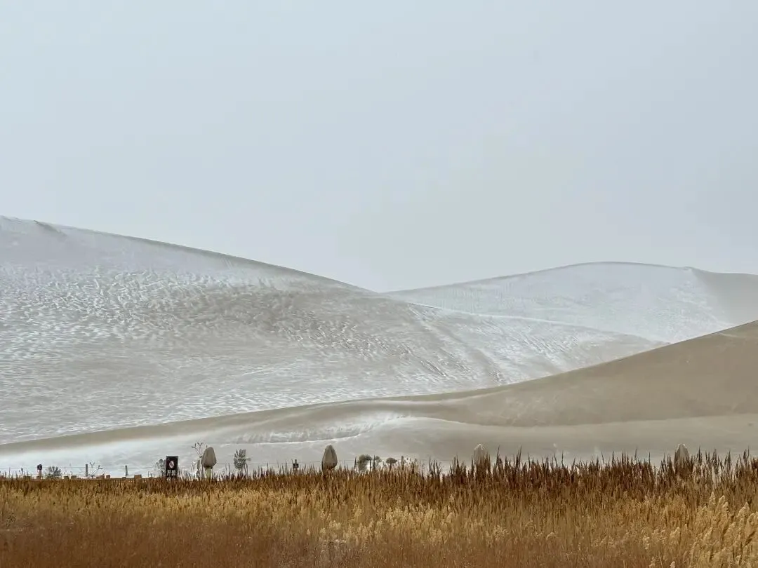 3. 雪后的鸣沙山风更大,围巾帽子口罩三件套缺一不可,不然真的会冻哭!
