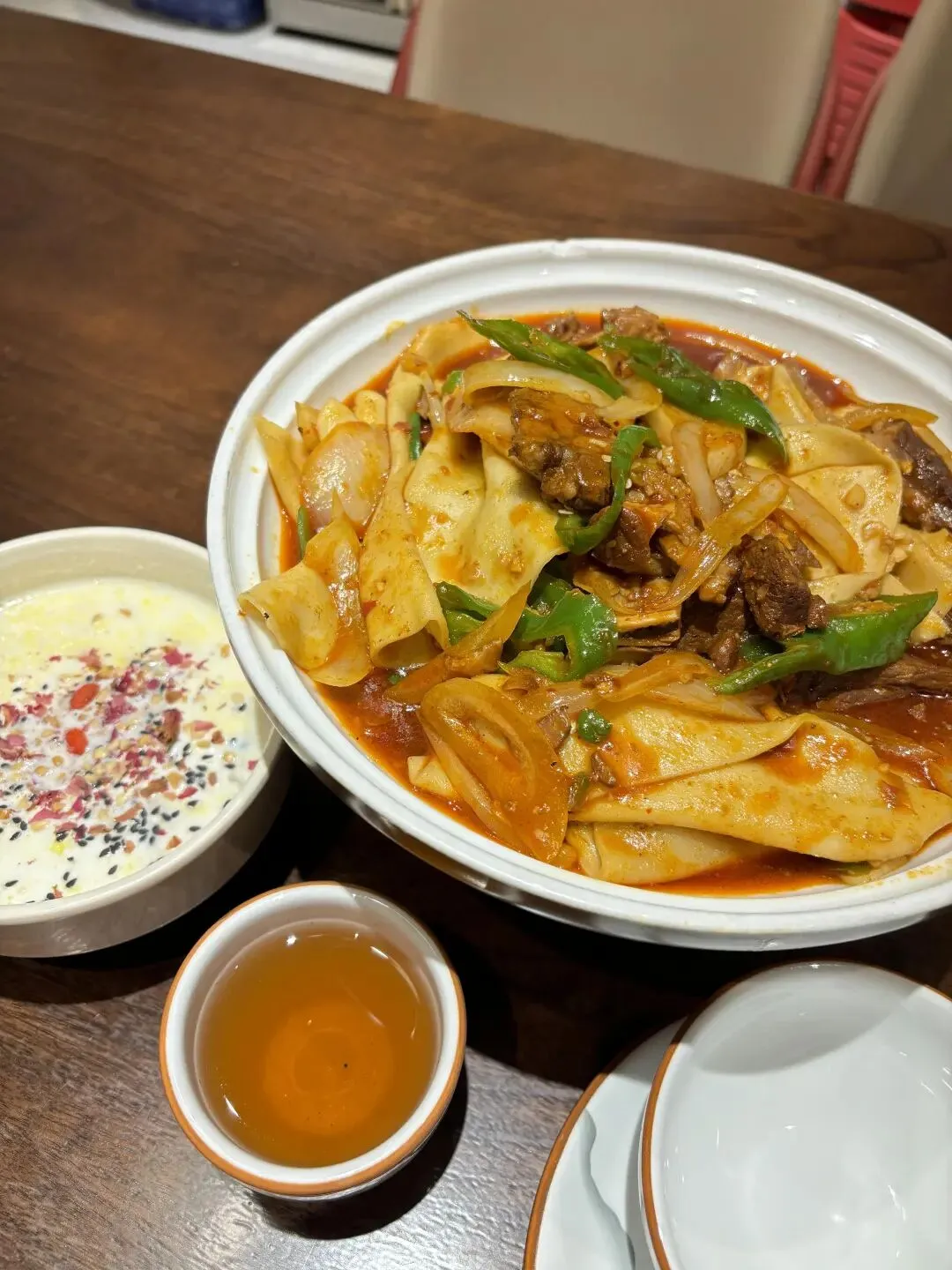 2. 晚饭冲靖远尕六美味羊羔肉,胡羊焖饼有点吃不惯,羊肉味太浓,但鸡蛋牛奶醪糟真的绝,直接封神!