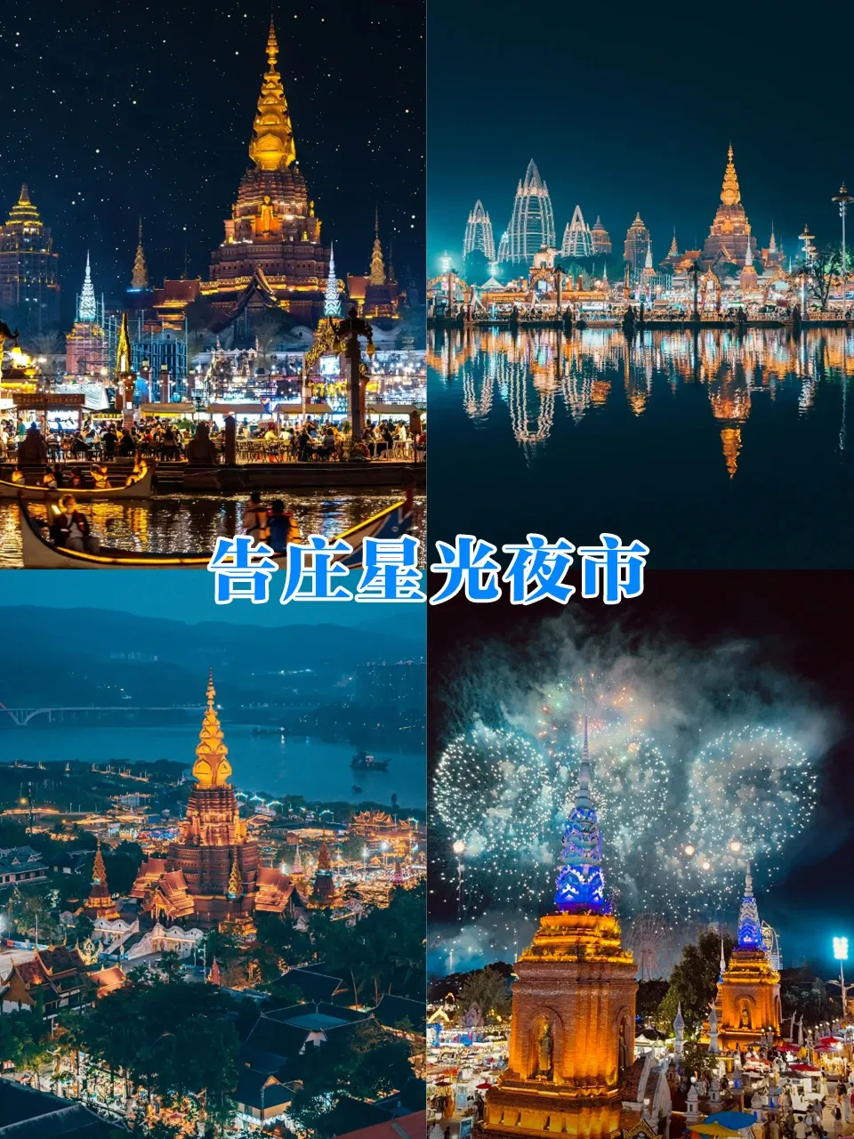 告庄西双景:西双版纳的核心,春节期间直接被灯笼铺满,比星星还密集[4]。大金塔前拍傣装写真,几十块钱就能租一套傣装,配上大金塔的异域风情,出片率100%。晚上逛星光夜市,从街头吃到巷尾,傣味烧烤、菠萝饭、舂鸡脚、泡鲁达,每一样都不踩坑,逛到脚软都不想走[3]。晚上还有傣迪现场,跟着神曲晃一晃,氛围感直接拉满。