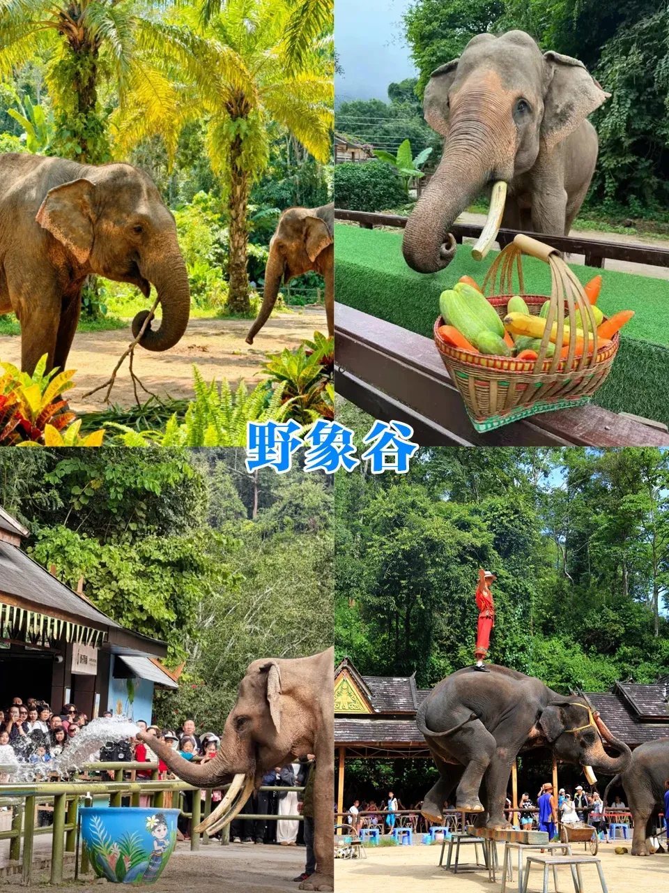 野象谷:来西双版纳,一定要和大象来一场亲密接触。春节期间,能看到大象表演、大象洗澡,还能亲手喂大象,和大象鼻子击个掌,沾沾新年的好运气[2]。运气好的话,还能看到野生大象出没,真的太神奇了。