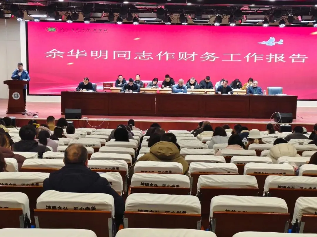 余华明同志向大会作了财务工作报告,详细报告了学校2025年度财务收支状况、经费使用与管理情况,并对未来财务工作提出规划方向。报告数据详实、条目清晰,充分体现了学校财务工作的透明度与规范性,为学校各项事业的可持续发展提供了坚实的财务保障。