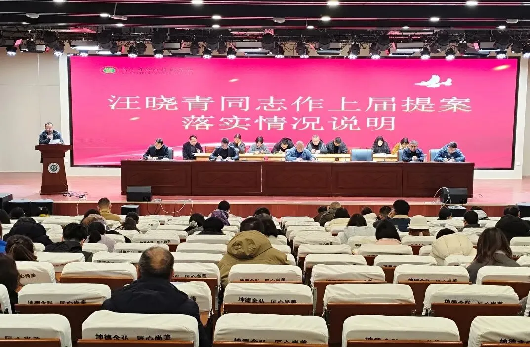 汪晓青同志就提案工作向大会作了报告。他首先通报了上届教代会提案的落实情况,包括增设新能源充电桩、添置健康测量设备及完善教师表彰机制等提案均已落实到位,体现了学校对教职工意见的高度重视和务实高效的工作作风。随后,他介绍了本次大会的提案征集情况,内容涉及课后服务方案优化、老教师关怀机制等行政事项,以及校园自动售货机、专用冰箱配置等教职工生活服务改进建议。汪晓青同志表示,提案工作小组将对所有提案进行认真梳理和研究,推动形成“征集—办理—反馈—改进”的工作闭环。他同时鼓励全体教职工继续围绕学校改革发展和师生关切,提出更多具有建设性、可行性的意见建议,共同为学校高质量发展贡献智慧与力量。