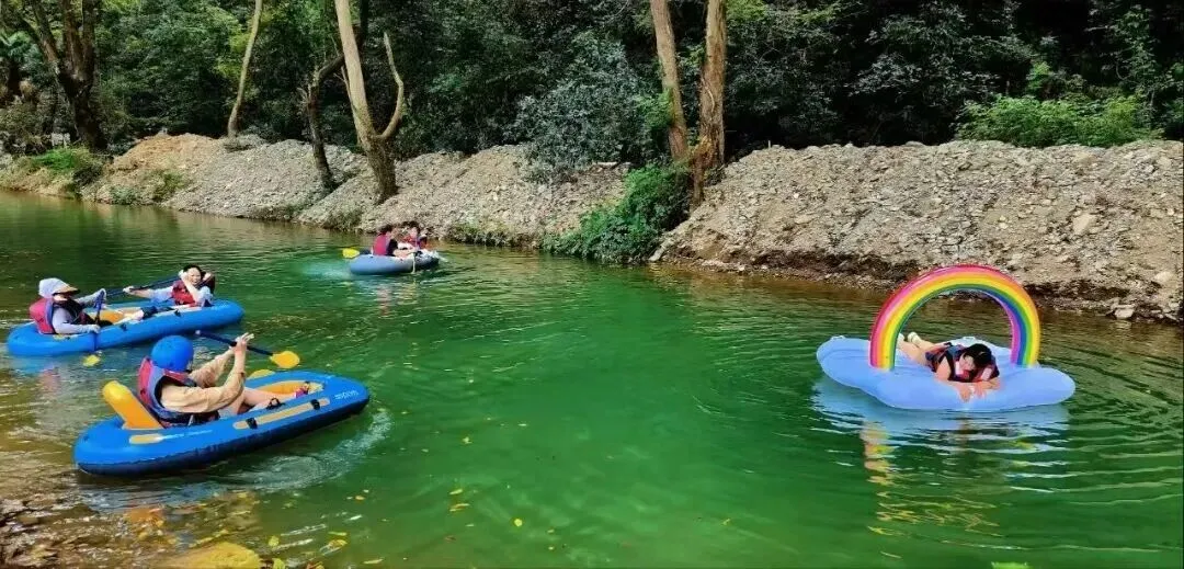 区别于传统的漂流,森溪野漂最大的亮点在于完全融入溪水中“躺着漂”,告别皮筏艇,无需费力划桨,只要“躺平”就好。不管是否会游泳,您只需穿上专用救生装备,放松身心,平躺于清凉透彻的山泉溪水之上,任由清澈、柔缓的溪流载着您随波逐流。仰望是湛蓝天空与婆娑绿荫交织的画卷,侧耳是潺潺流水与山间鸟鸣的协奏曲。这是完全放空、零负担的漂流新体验,是与自然最亲密的拥抱,尽情享受这独一无二的“深山躺漂”奇趣清凉之旅!