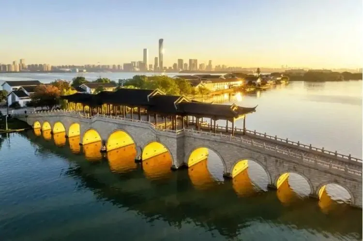 9. 李公堤:金鸡湖唯一的湖中长堤,也是苏州高端餐饮与特色休闲的聚集地,堤上保留着精致的江南庭院式建筑,古韵与现代商业相融,白天雅致、夜晚繁华。