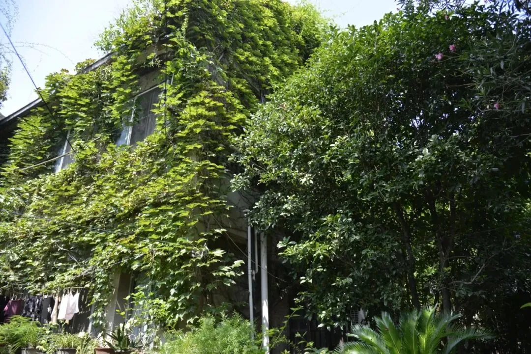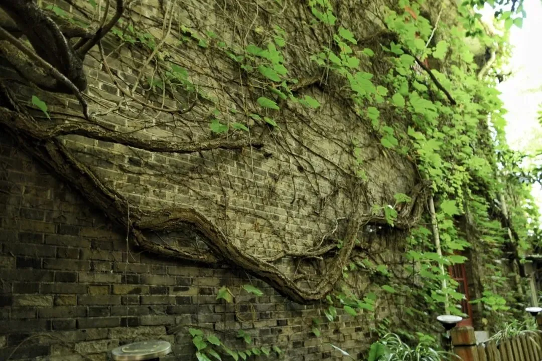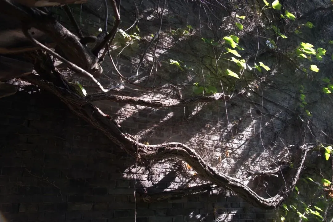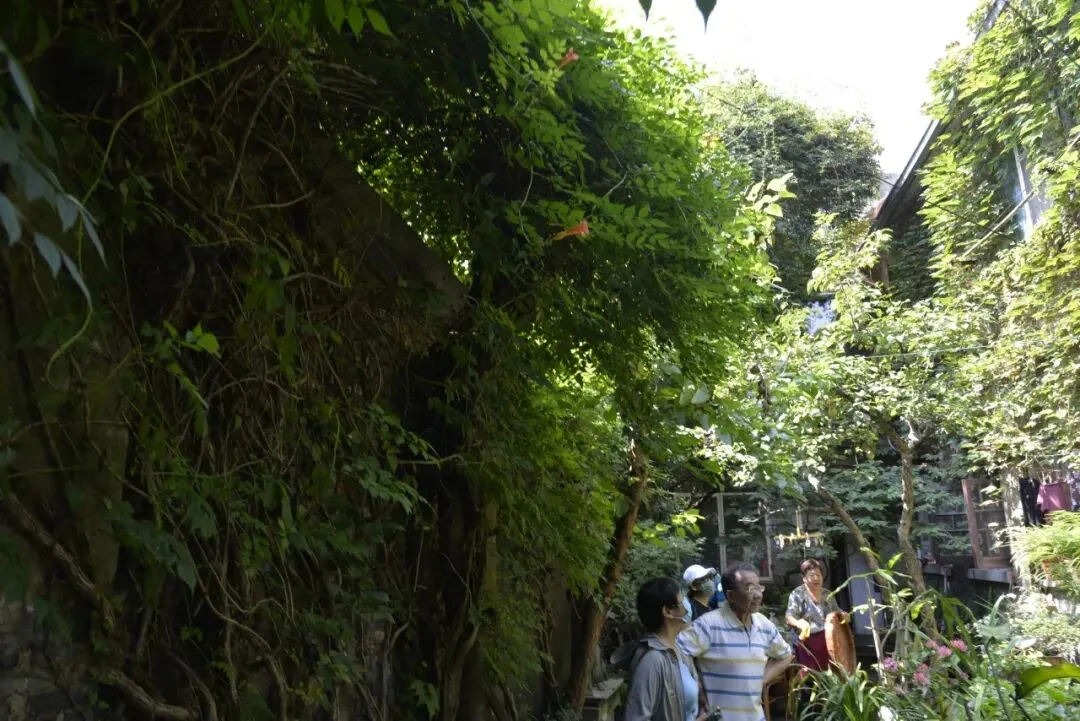 推开斑驳的木门,孙老师已在庭院等候。他指着院墙上盘虬卧龙的藤蔓,语气里满是珍视:“这爬山虎是房子刚建成时,我祖父亲手栽下的,算下来已有80多个年头了。”顺着他的目光望去,深褐的藤蔓如老龙般盘踞在青砖墙面上,粗壮的枝干早已与砖缝融为一体,嫩绿的新叶层层叠叠,在阳光下泛着温润的光泽。“夏天它能把整面墙都遮起来,院里凉丝丝的;秋天叶子红了,像一幅活的画。”孙老师笑着说,这些年他从没想过刻意修剪,任由藤蔓自由生长,“它是园子的一部分,就像家里的老人,得好好陪着。”