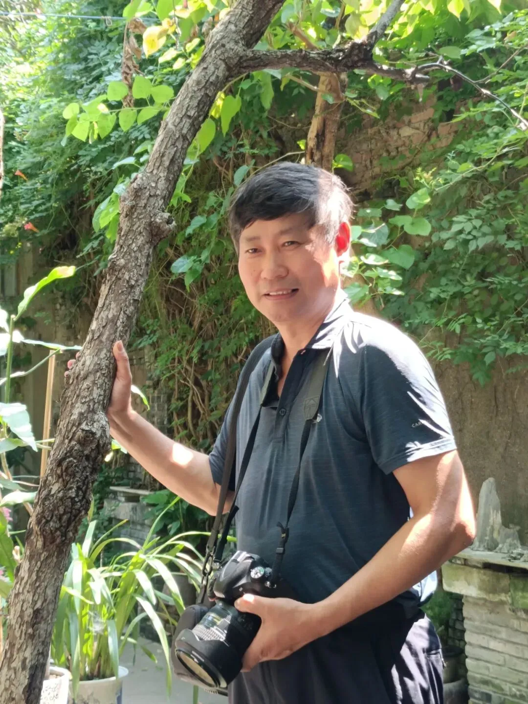 跟着孙老师往庭院深处走,几株果树格外惹眼。“这棵石榴树,已经有60多年了。”他指着院角一棵枝繁叶茂的石榴树,树干虽不算粗壮,却遒劲有力,枝头还挂着几个未摘的石榴,外皮泛着淡淡的红。“每年端午前后开花,满树红得像火,秋天结的石榴籽儿又大又甜。”不远处的梨树则更显苍劲,枝干向四周舒展,孙老师说这树比他小不了几岁,“春天梨花似雪,夏天浓荫蔽日,秋天梨香满院,一年四季都有看头。”