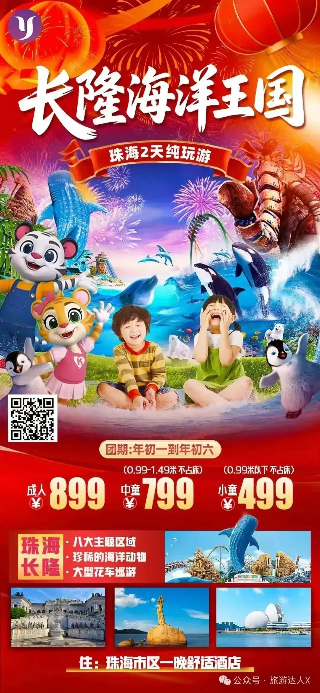 【携程旅游】2月20日(年初四)出发899元/人→【长隆海洋王国】+珠海2天纯玩游