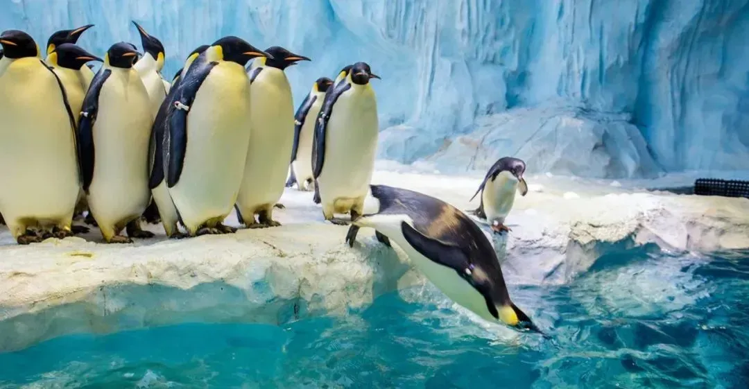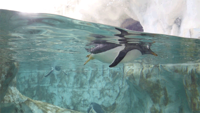一站式度假怎么能少得了南北极呢?在极地探险区就能实现!进入南极的企鹅馆,会看到一群腿短爱吃还易胖的企鹅,走起路来婀娜多姿左摇右摆的,可是它们一进入水中,就会敏捷成一道闪电。